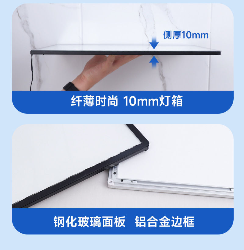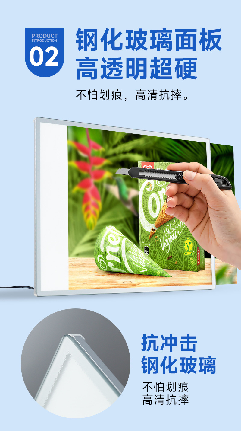 超薄型ライトボックス看板 LED発光壁掛け強化ガラスサイン絵画広告ライトボックスケータリングディスプレイ
