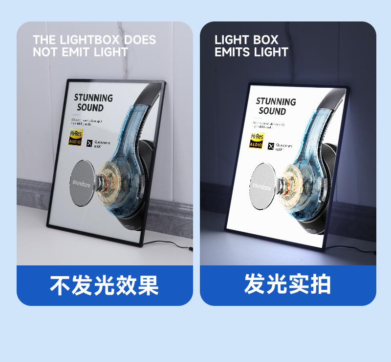 強化ガラス超薄型ライトボックス抽選絵LED発光展示看板壁式エレベーターメニューイラスト看板