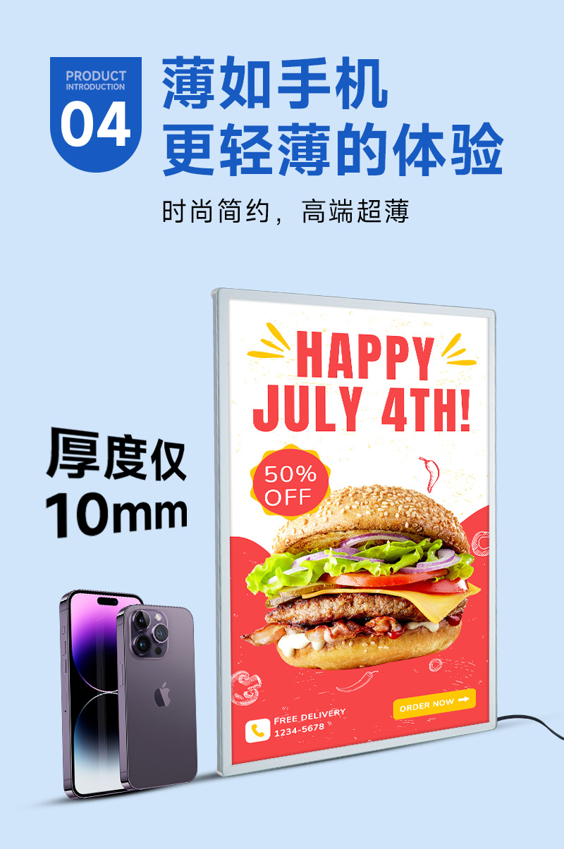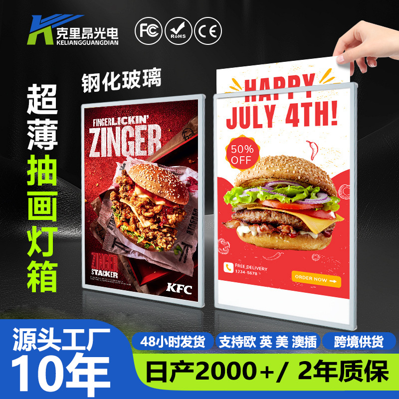 LED超薄型絵画広告ライトボックス壁掛け強化ガラス発光ポスターメニュー表示発光広告看板