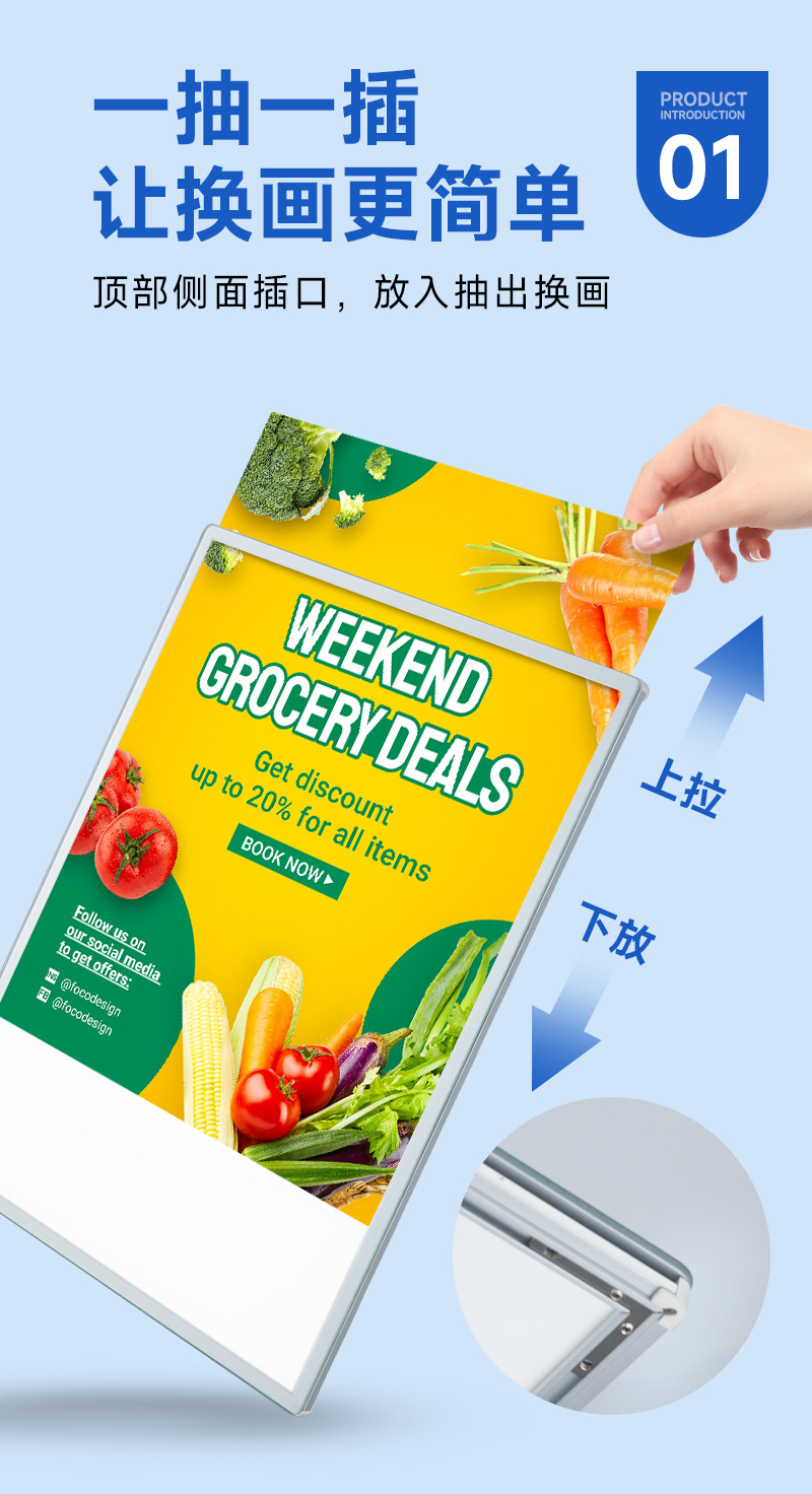 Led充電発光ポスター展示棚床置き縦型ランプハウス広告看板デパート飲食抽選画移動水札