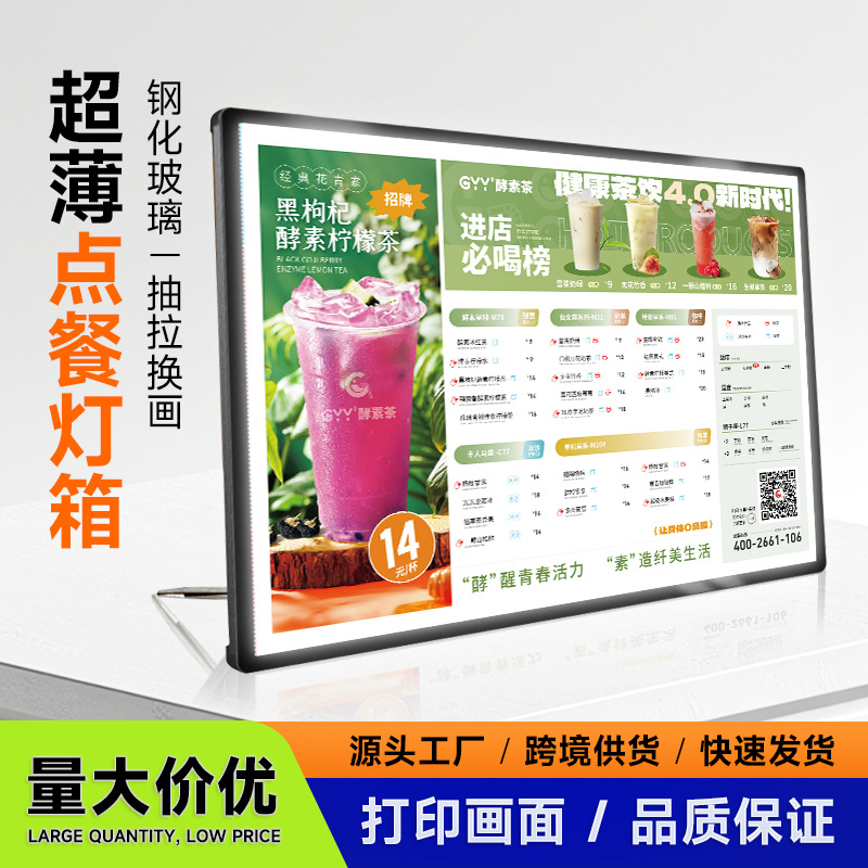 超薄型テレビライトボックス吊り下げ壁掛けミルクティーショップ発光注文ライトボックス看板メニューディスプレイ価格表