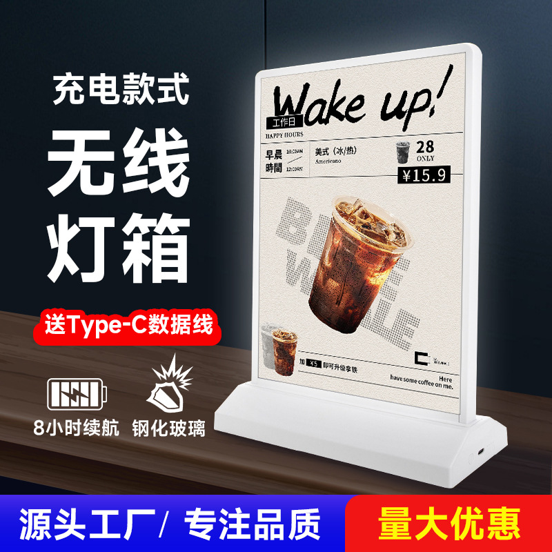 双面吧台发光菜单广告灯箱可充电led桌面A4灯牌 商场广告牌展示牌