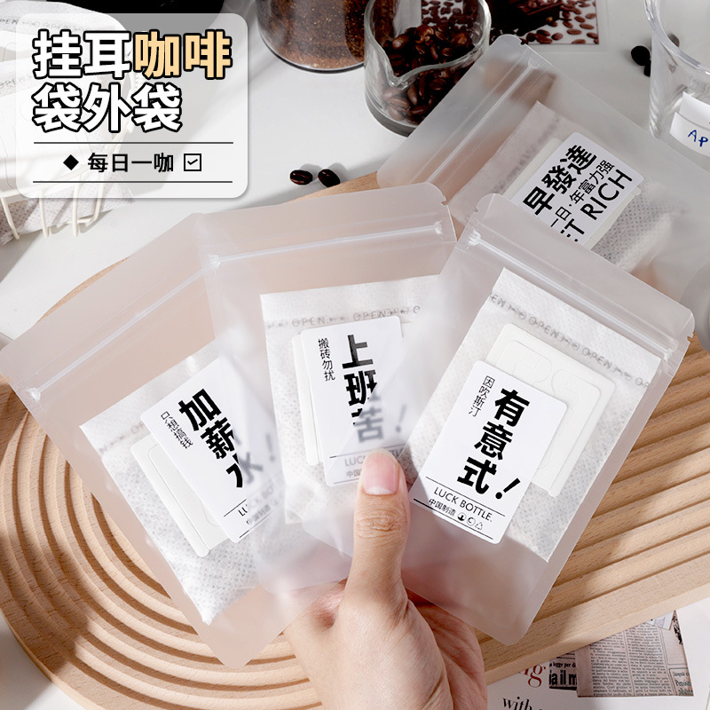 磨砂透明挂耳咖啡粉自封袋带贴纸便携式一次性咖啡粉食品级外袋