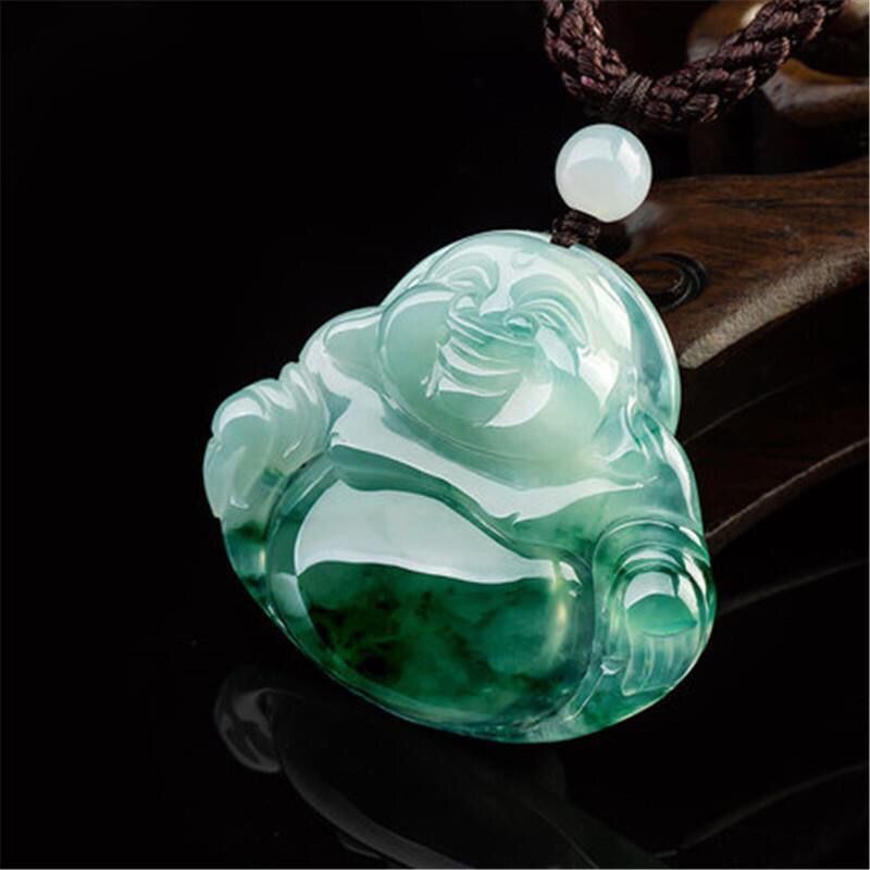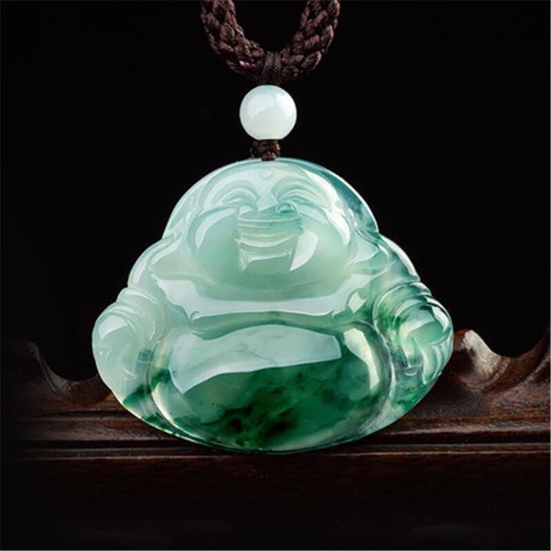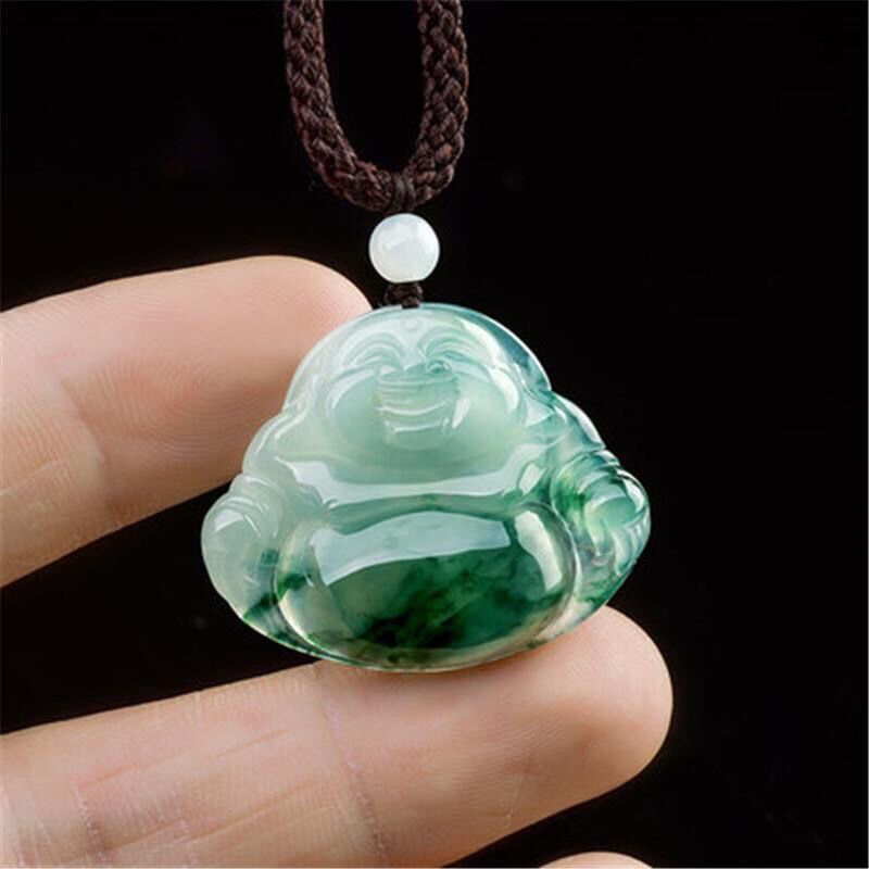 Gaobing 純血翡翠氷種花弥勒仏翡翠仏ペンダント男性と女性のための大型笑い仏ネックレス翡翠ペンダント