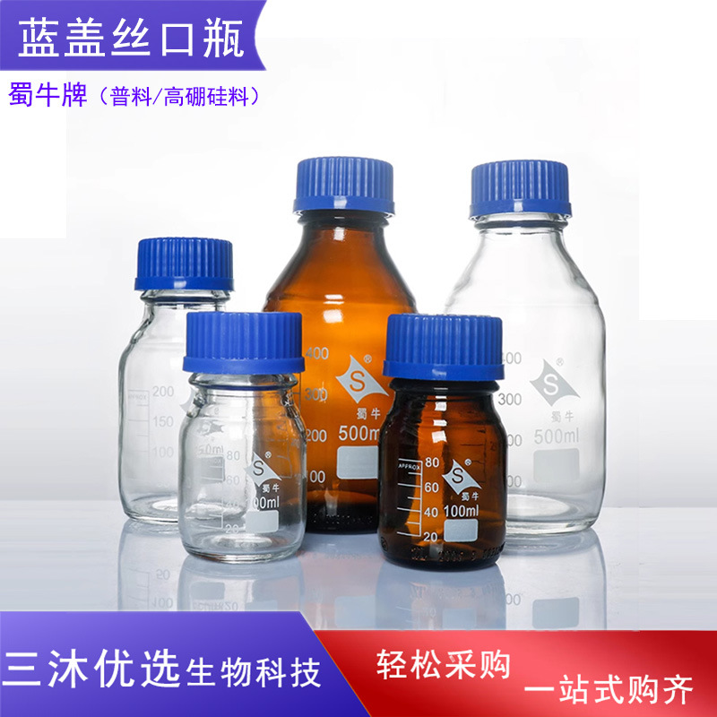工場価格 Shuniu ブルー蓋試薬ボトル高ホウケイ酸シルク口試薬ボトル高温耐性 Shuibo 密封ネジ口サンプルボトル