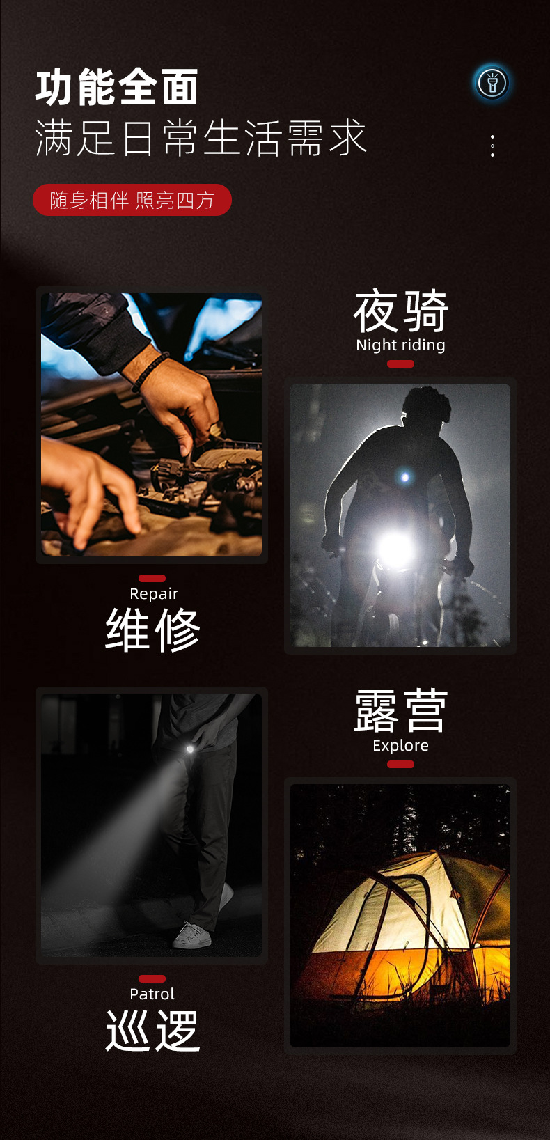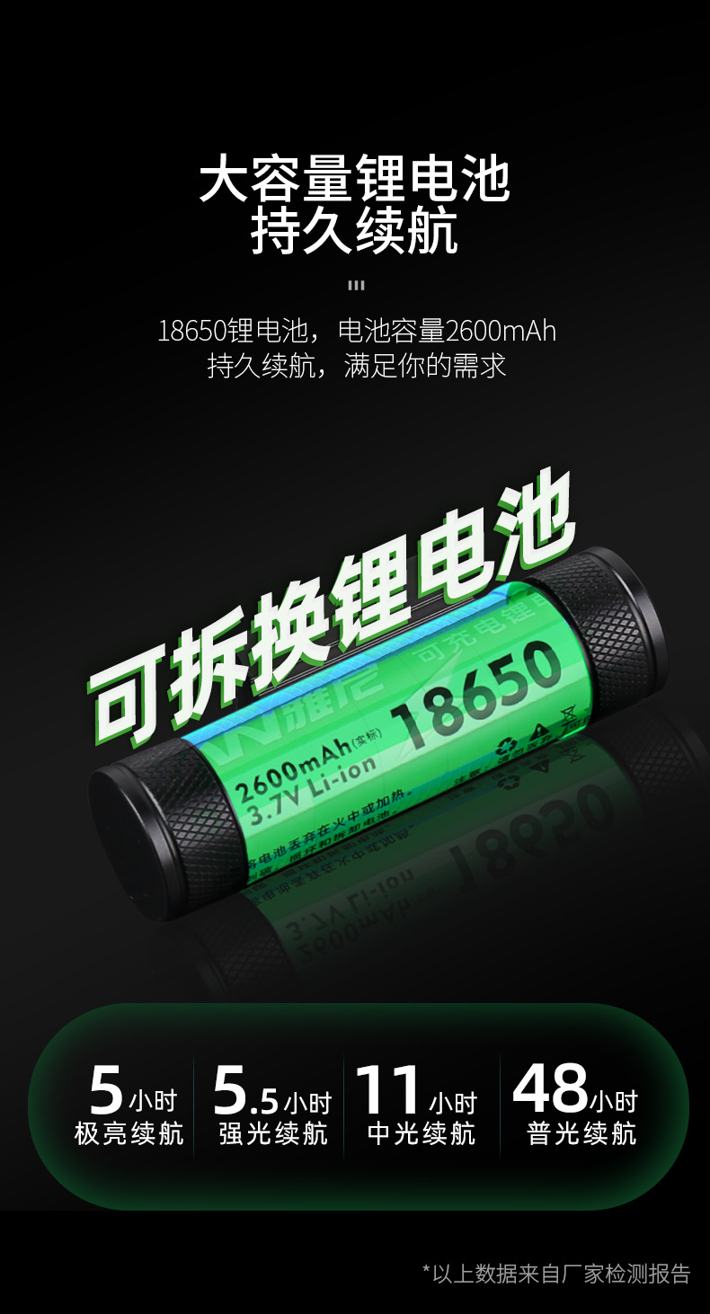 探検懐中電灯強光充電戸外登山超亮遠射超長航続大容量家庭用作業灯