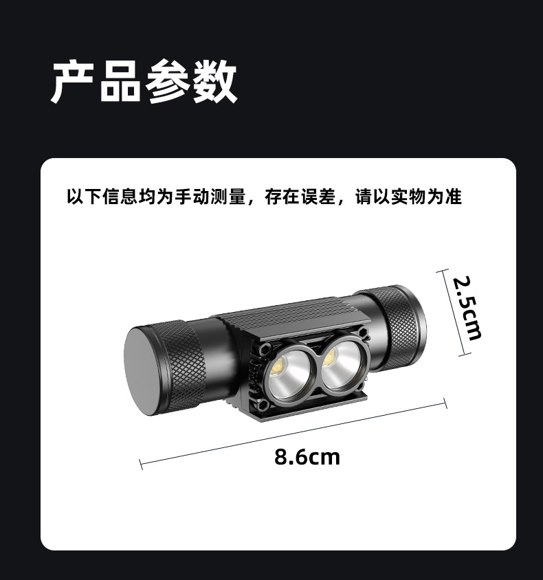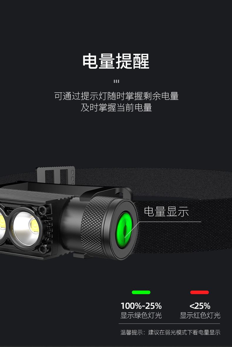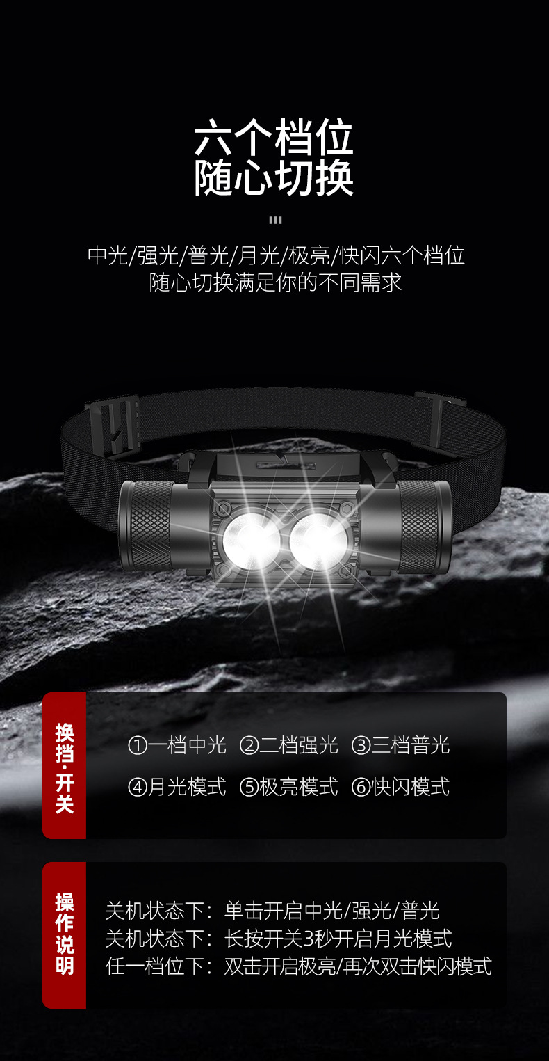 黒豹森ヘッドライト三色赤黄白色光充電超亮頭装着長航続携帯屋外夜釣り登山