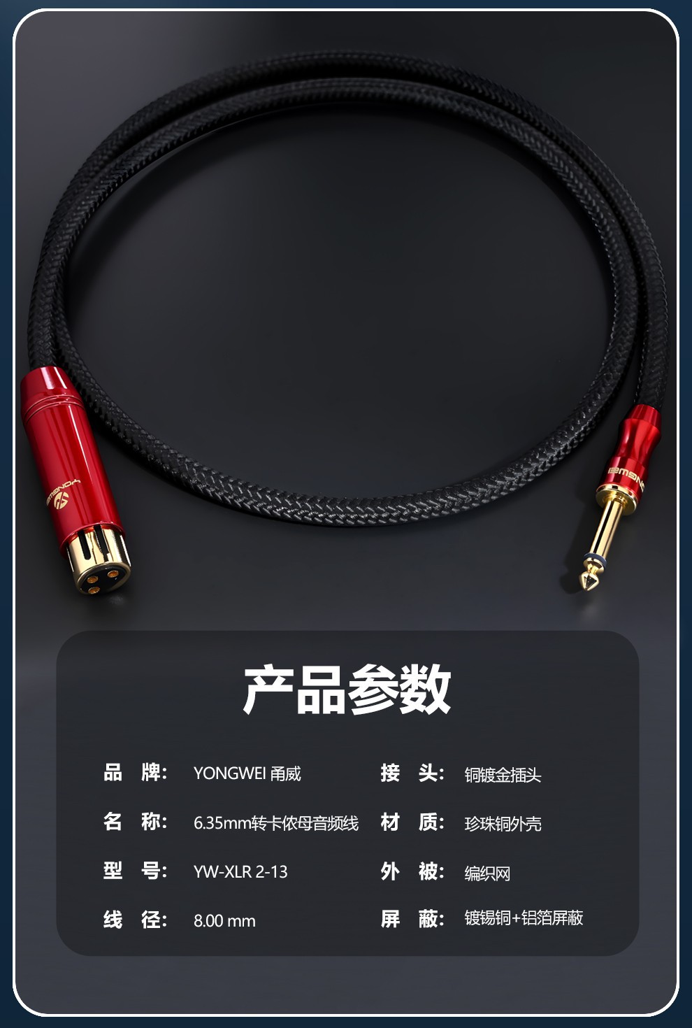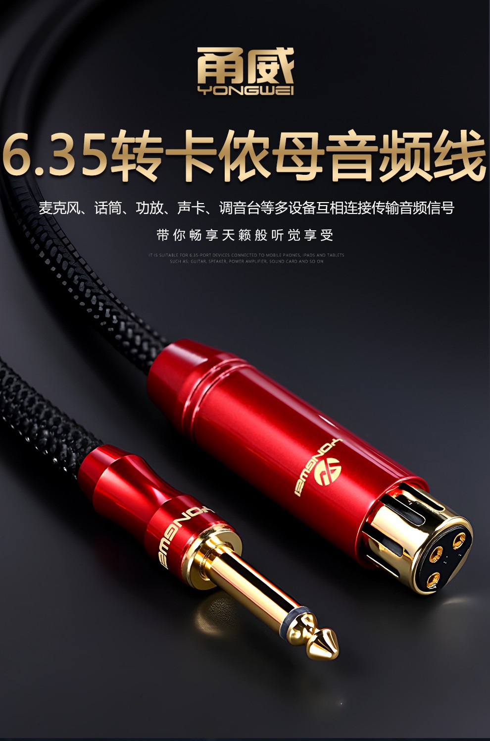 Yongwei 単結晶銅銀メッキ 6.5 ターン XLR メスマイクケーブル 6.35 大型 2 コア 5V ダイナミックマイクスピーカーアンプ