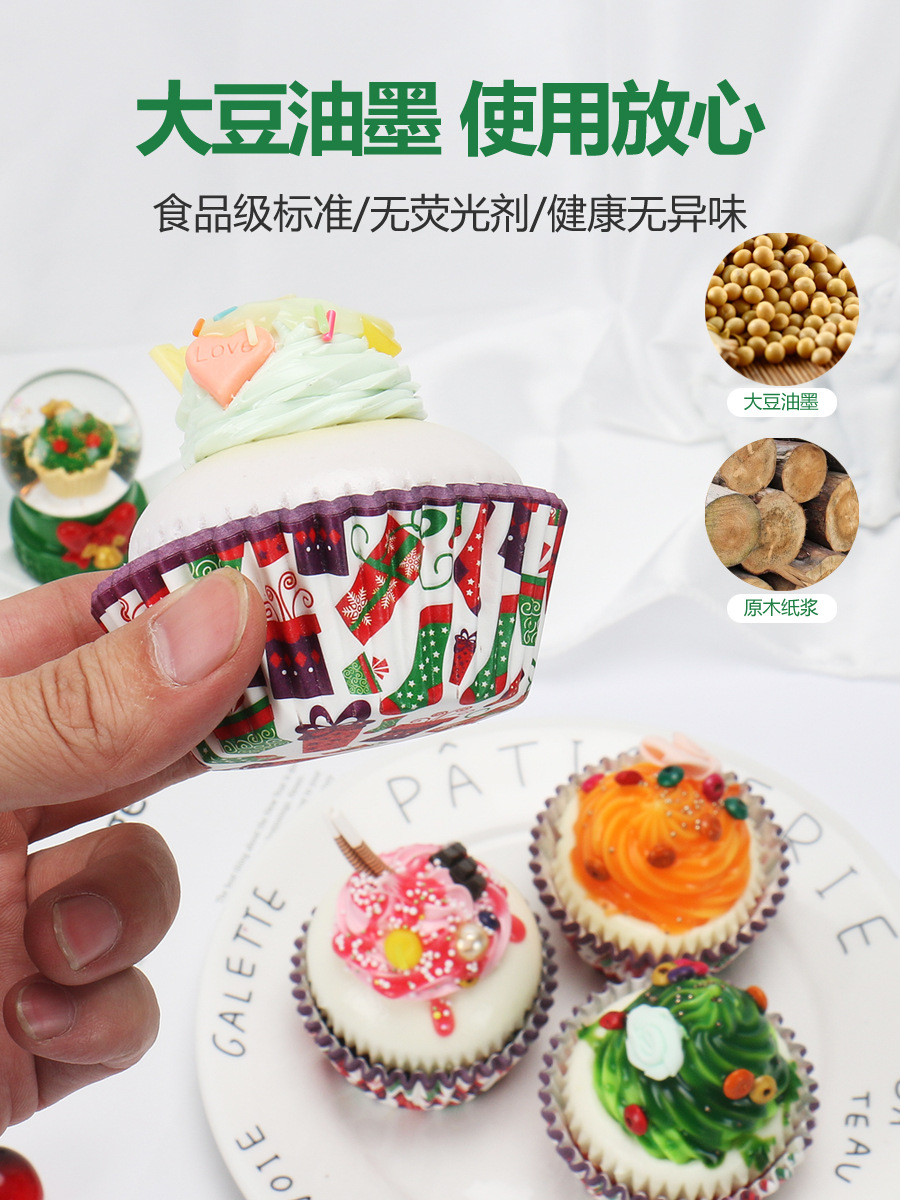 圣诞主题蛋糕纸托 一次性马芬杯 防油纸 雪媚娘蛋糕纸托 印花纸杯