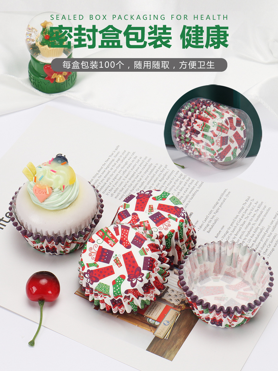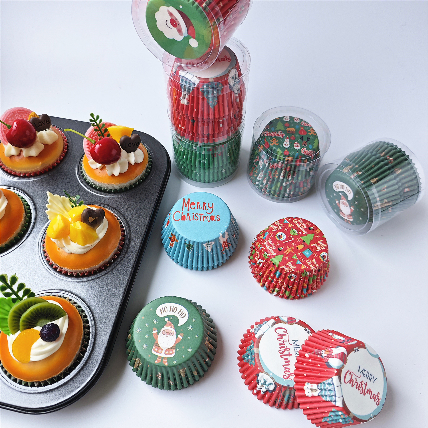 クリスマスシリーズ100個入りプリントケーキ紙コップ焙煎用具防油紙ケーキ紙トレイ