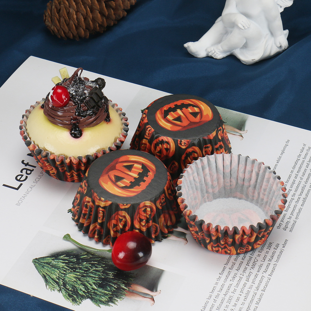 ハロウィンシリーズケーキペーパートレイ雪梅ニアンペーパートレイ100個PVCチューブ耐油性と耐高温性ケーキカップ