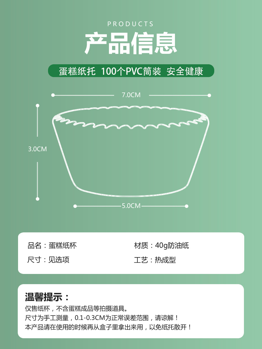 百種類の日常模様ケーキ紙托雪媚娘紙托100個PVC筒装防油耐高温ケーキカップ