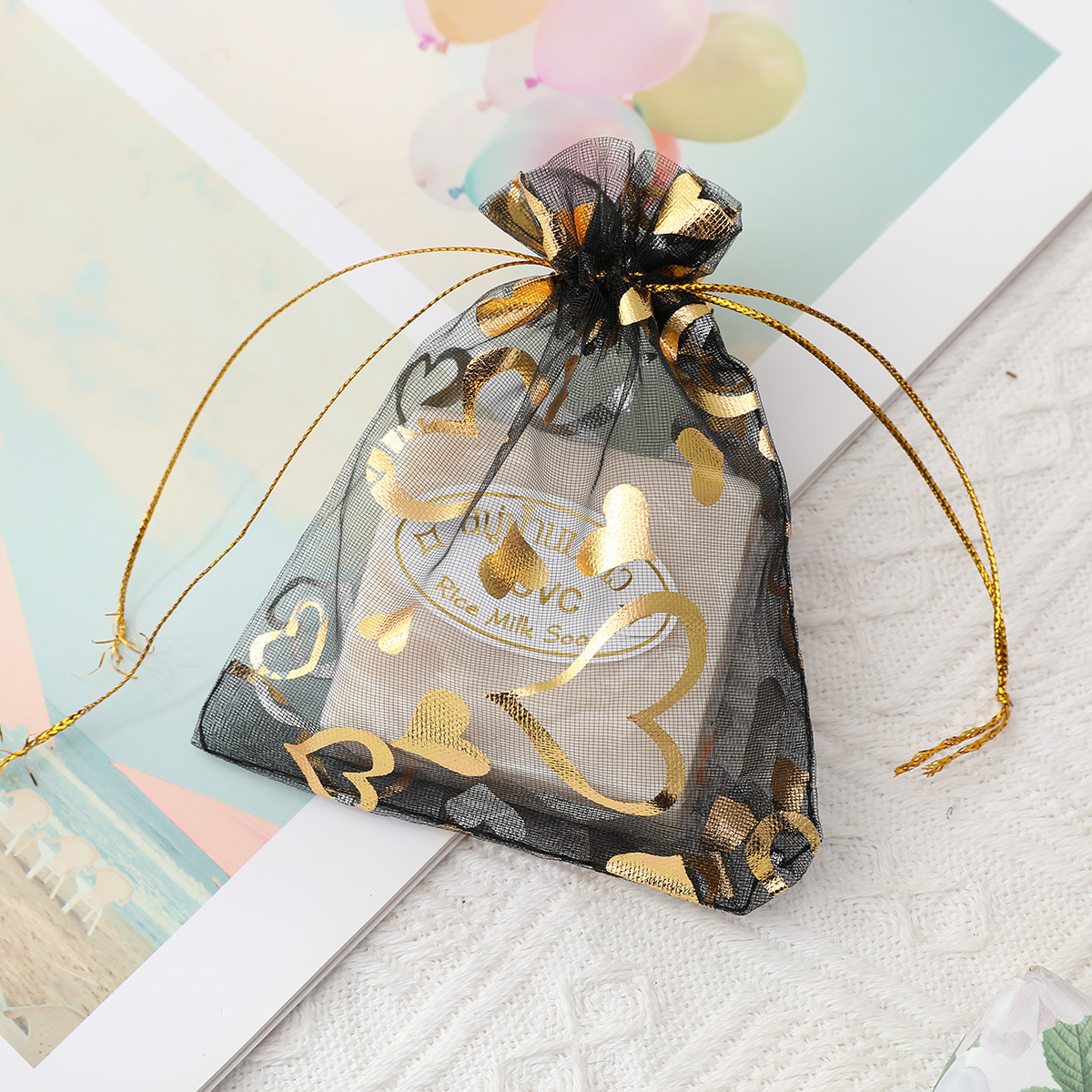 烫金桃心网纱袋欧根纱抽绳束口糖果袋化妆品小样收纳礼品袋多色
