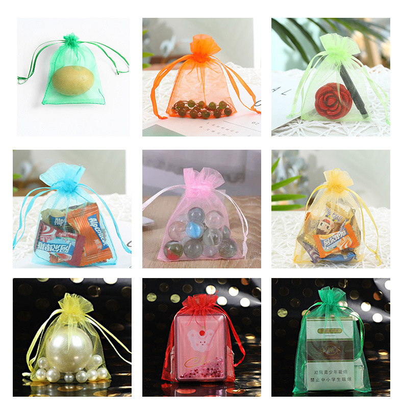 義烏スポット卸売オーガンザメッシュジュエリーバンドルポケット防鳥マルチカラーギフト収納ジュエリーバッグ