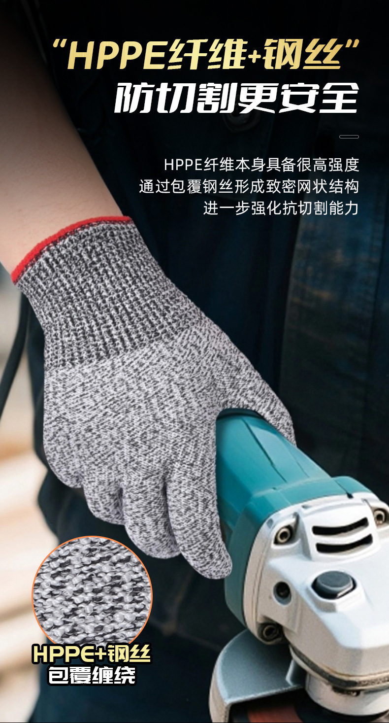 5級耐切創手袋、海での魚捕り、木工、HPPE素材、労働保護、耐摩耗性、保護作業用