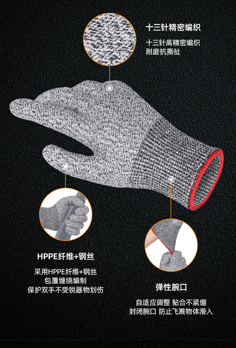 卸売レベル 5 耐切創手袋 HPPE 耐摩耗性刺し防止耐切創木工アンチスクラッチアンチカット指サック