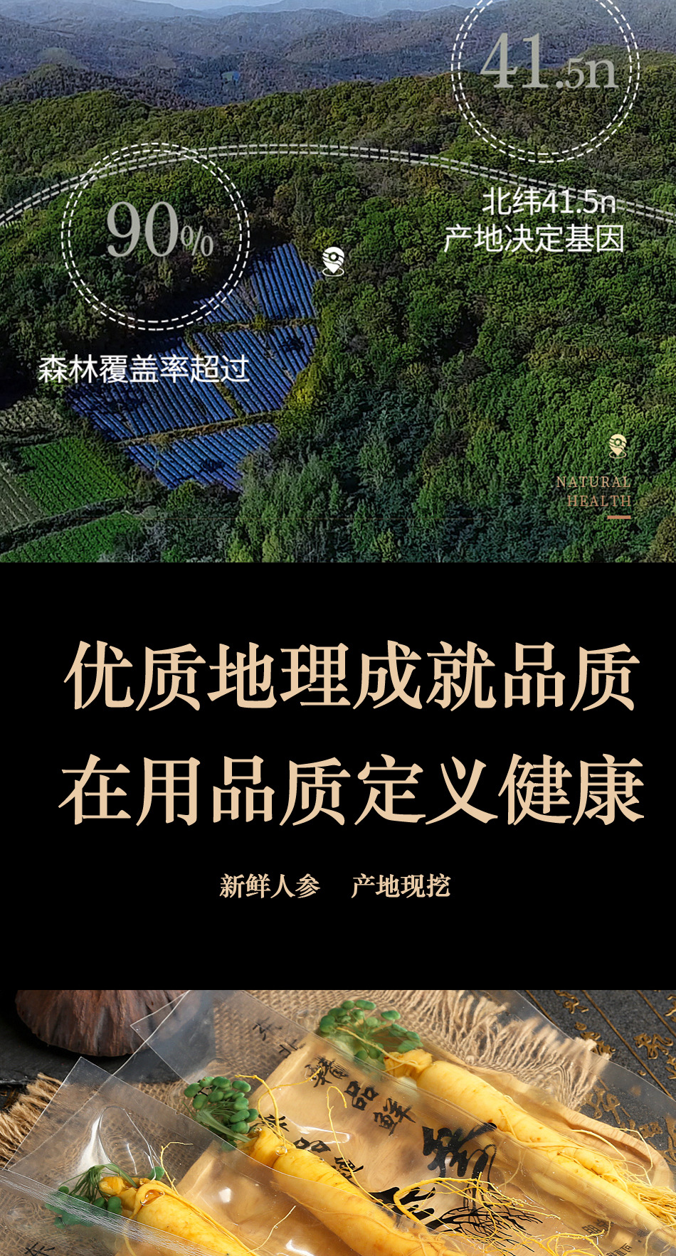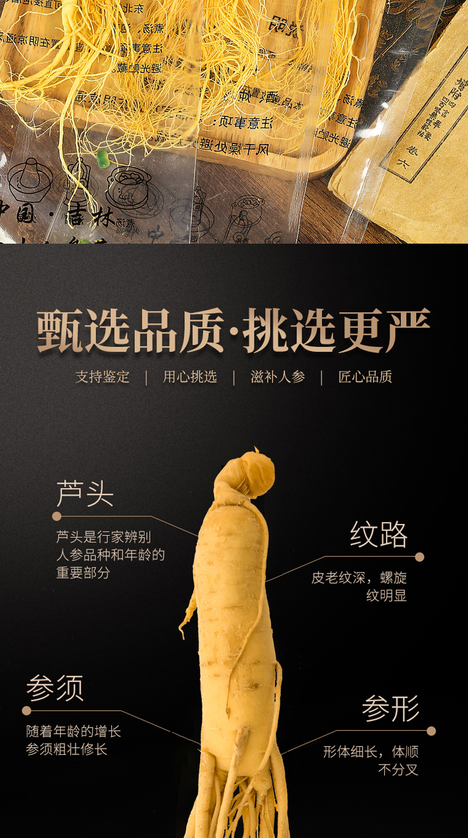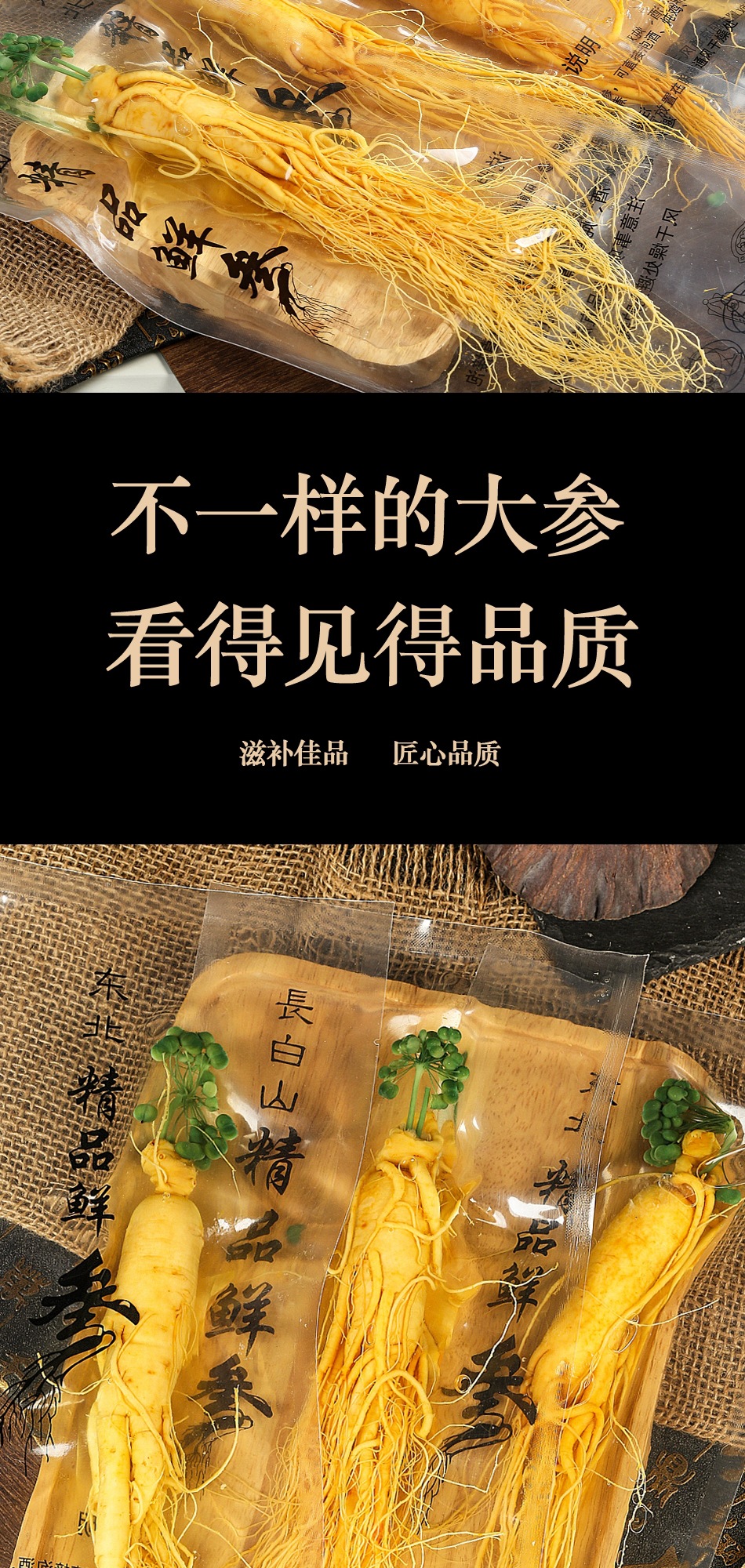 長白山新鮮人参新鮮品整枝野山参包装真空泡酒専用特大東北人参粉