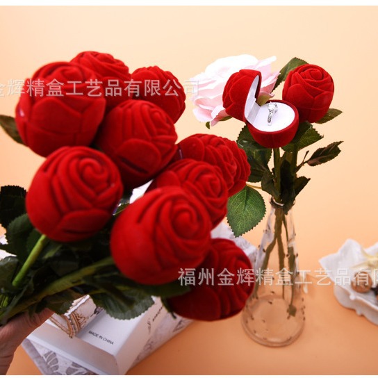 【人気】現物の人気貿易ギフトボックスのベルベットのバラの花の枝付きリングボックスは結婚式の婚約ベルベットをプレゼントします