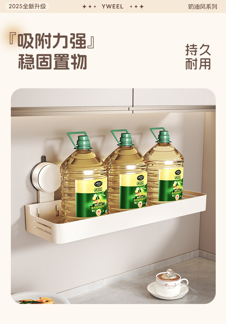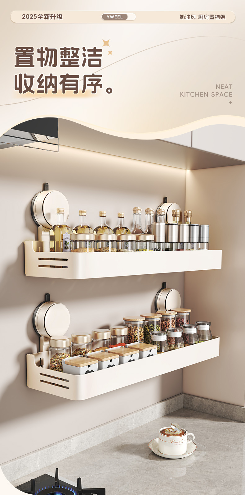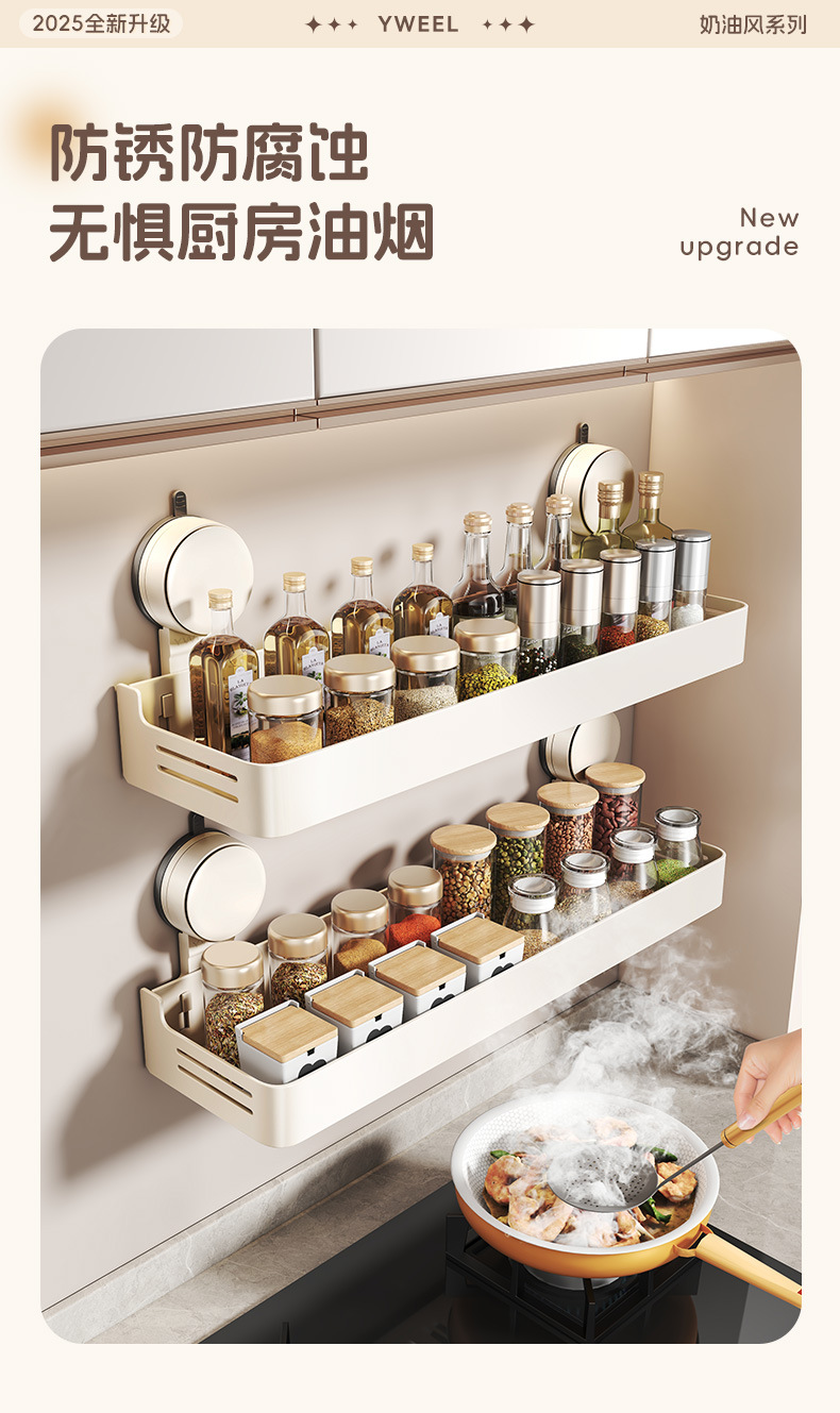 クリーム風キッチン収納ラック多機能調味料ラック穴あけ不要壁掛け調味料ボックス調味料収納棚