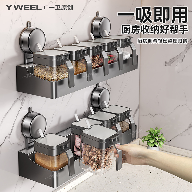 厨房盐调味罐收纳盒家用吸盘置物架壁挂调料盒组合套装调料瓶罐架