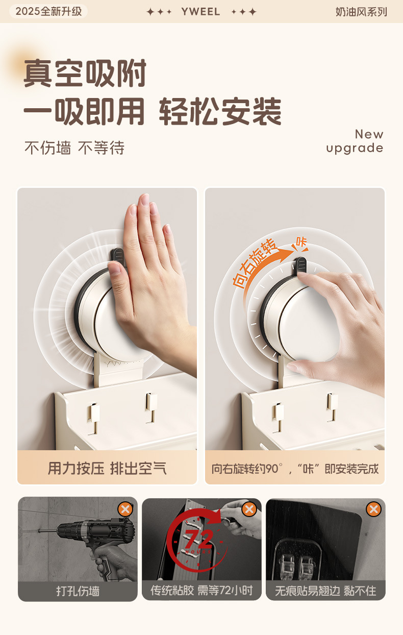 クリーム風トイレラック洗面台穴なし壁掛け浴室ベランダ壁トイレ収納棚
