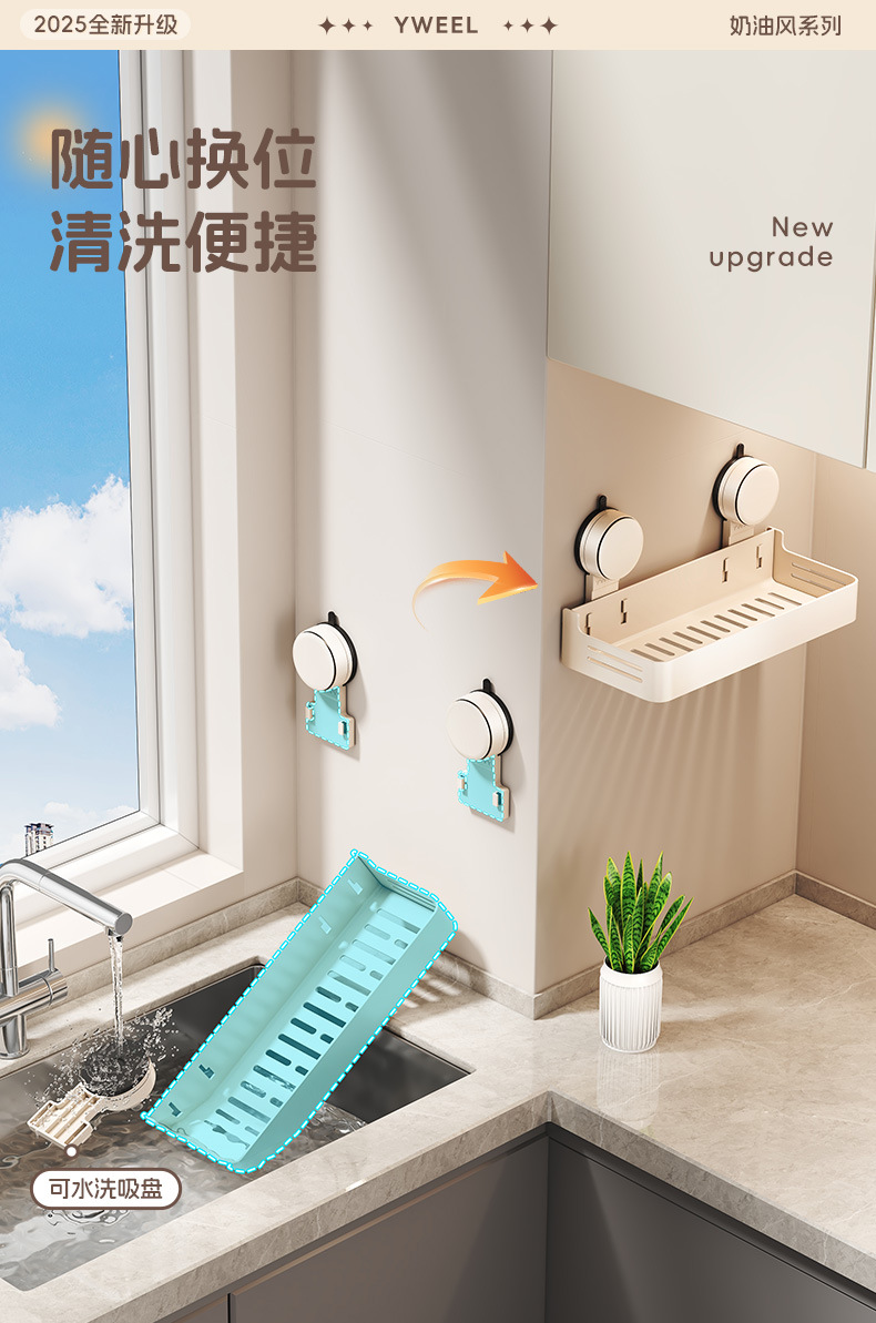 吸盤キッチンラック雑巾収納排水ラック穴なし壁掛け調味料ラック蛇口水槽神器