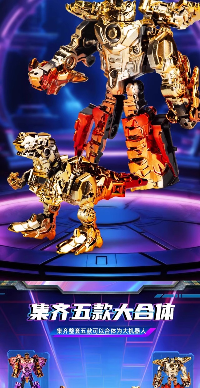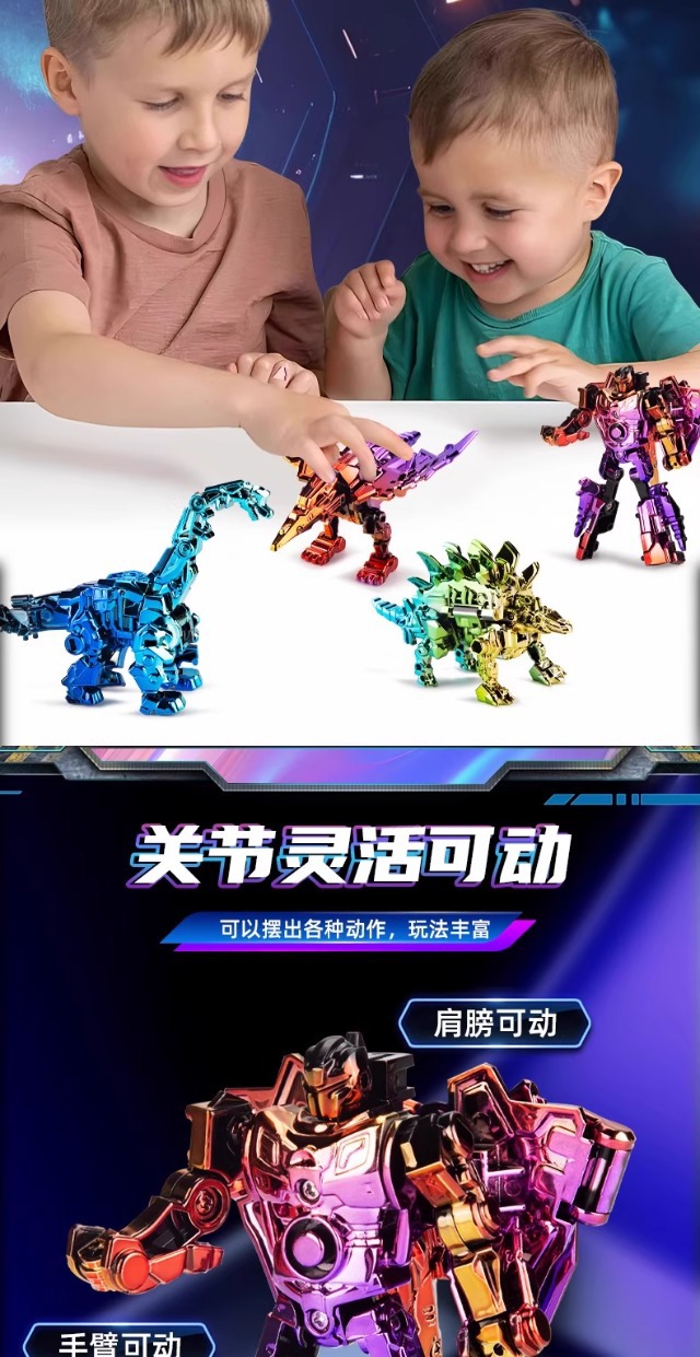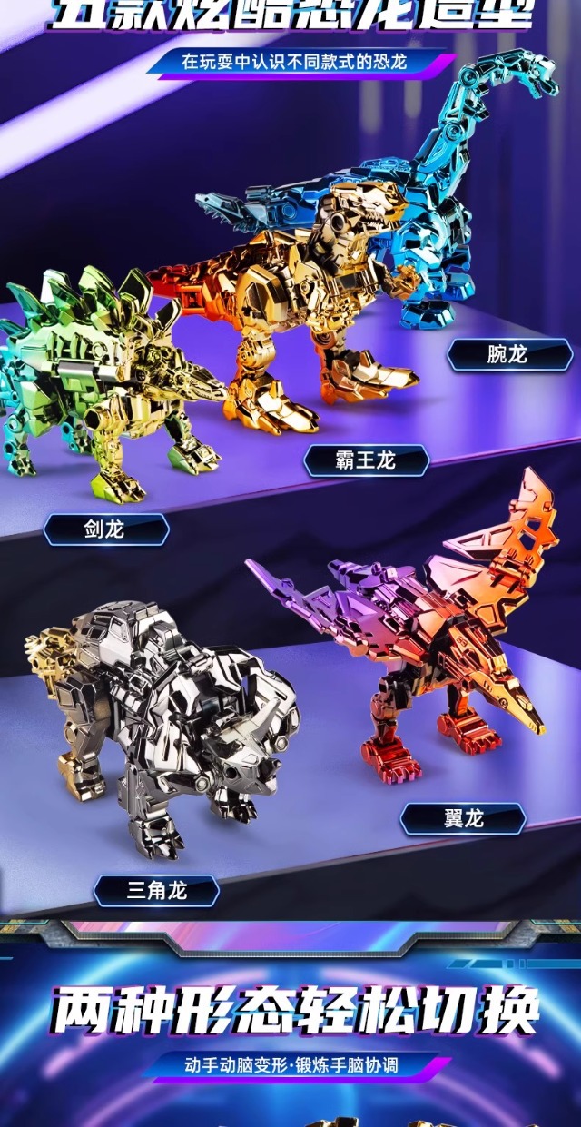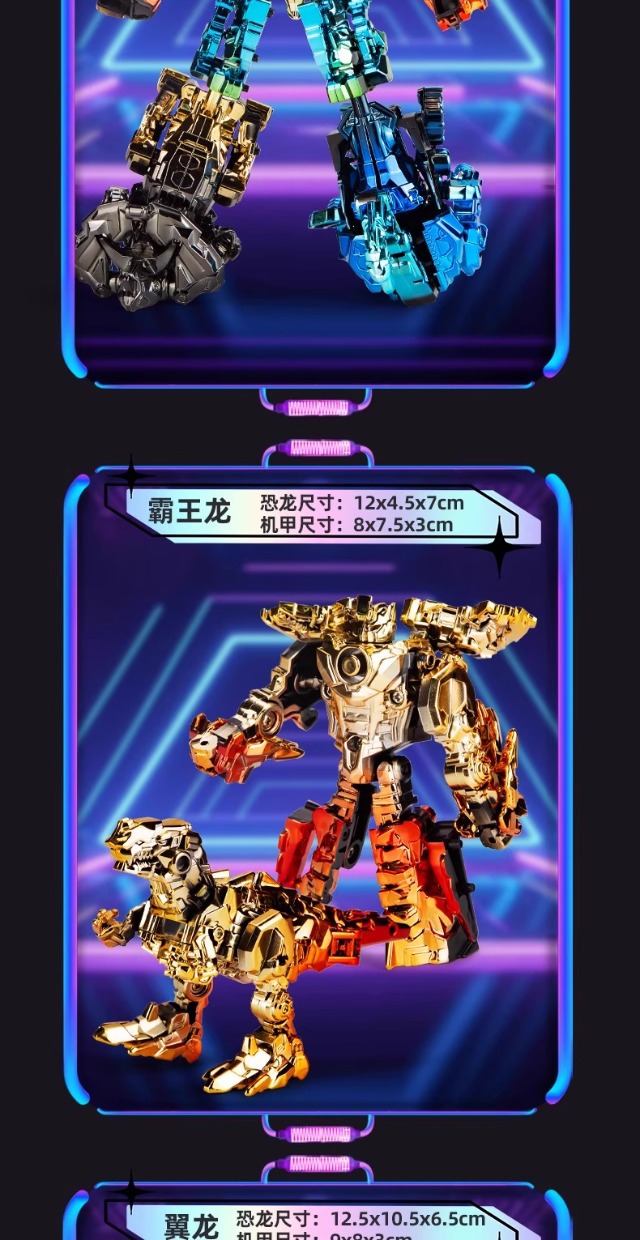 新款电镀炫彩合金恐龙变形玩具霸王龙合体机器人男孩益智儿童玩具