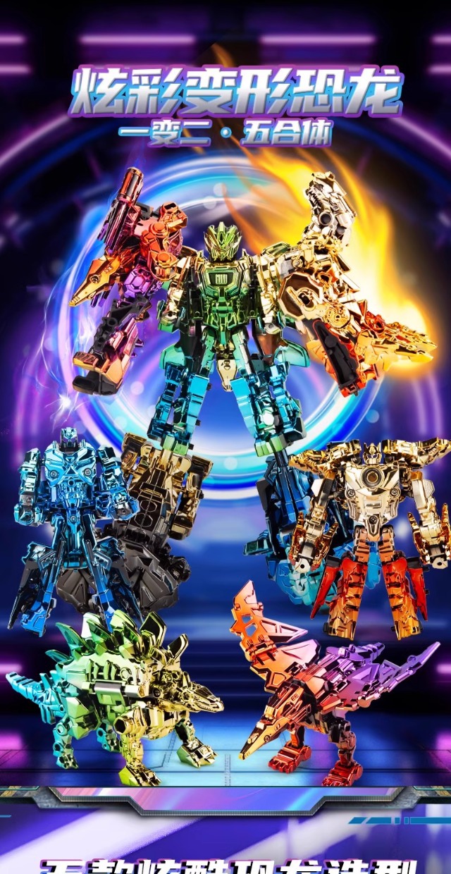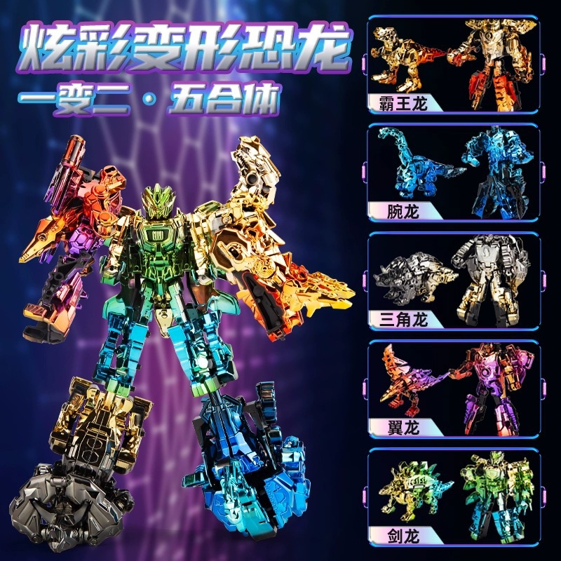 炫彩恐龙机器人变形机甲五合一益智拼装组合儿童金刚玩具礼物批发