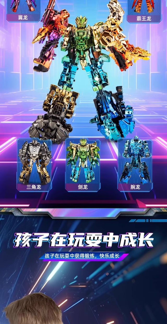 新型五合一恐竜ロボット覇王龍合金モデル手作り子供玩具男の子プレゼント