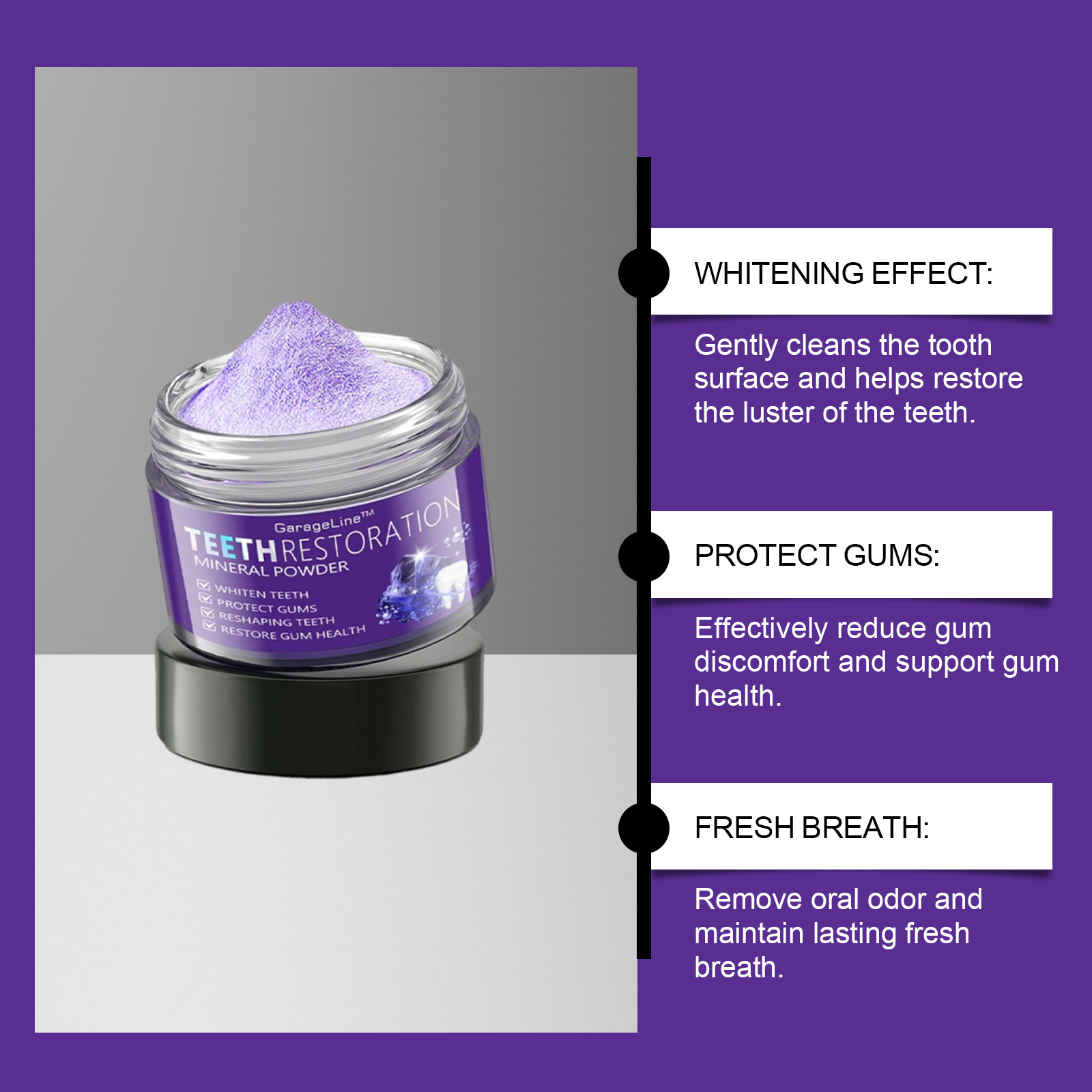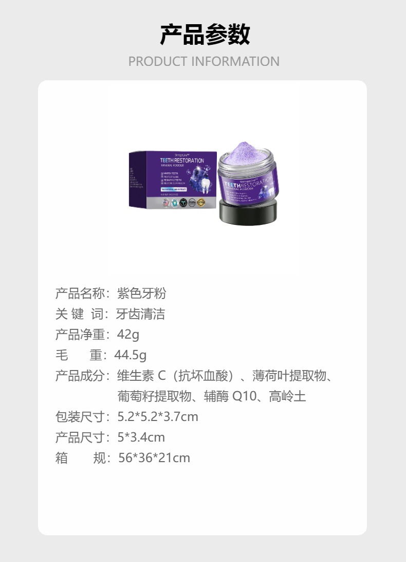 ORALHOE パープル デンタル パウダーは、歯を優しく洗浄し、保護し、長時間持続し、歯の汚れや黄ばみを除去します。