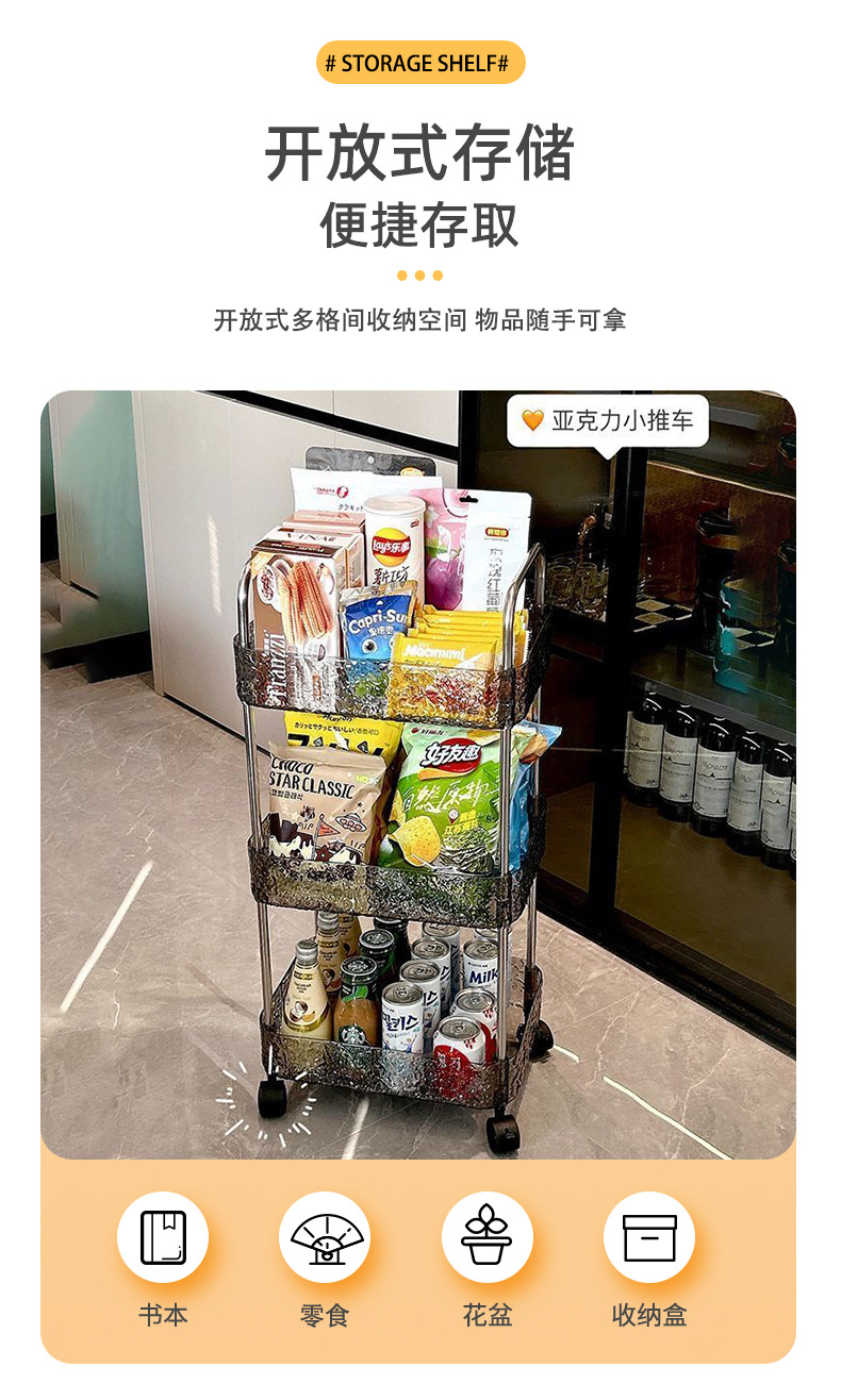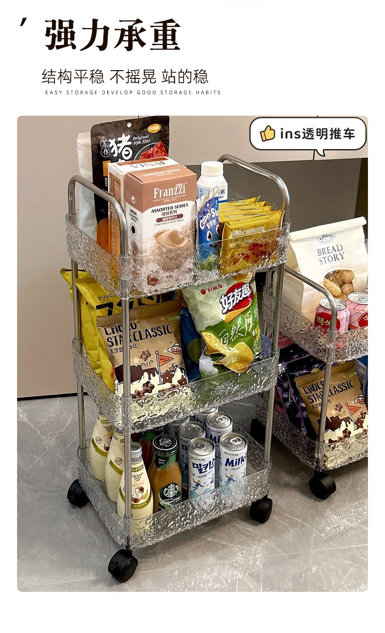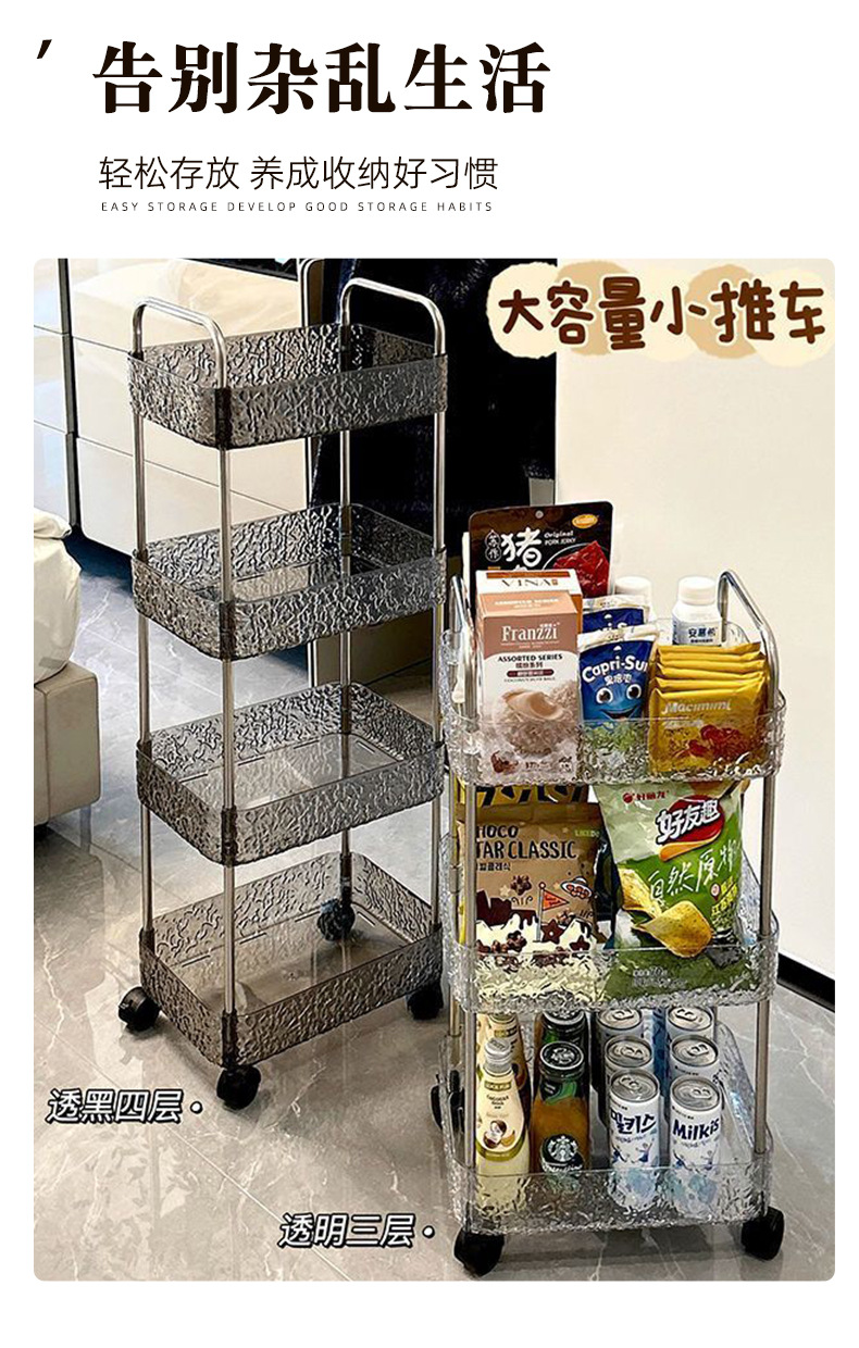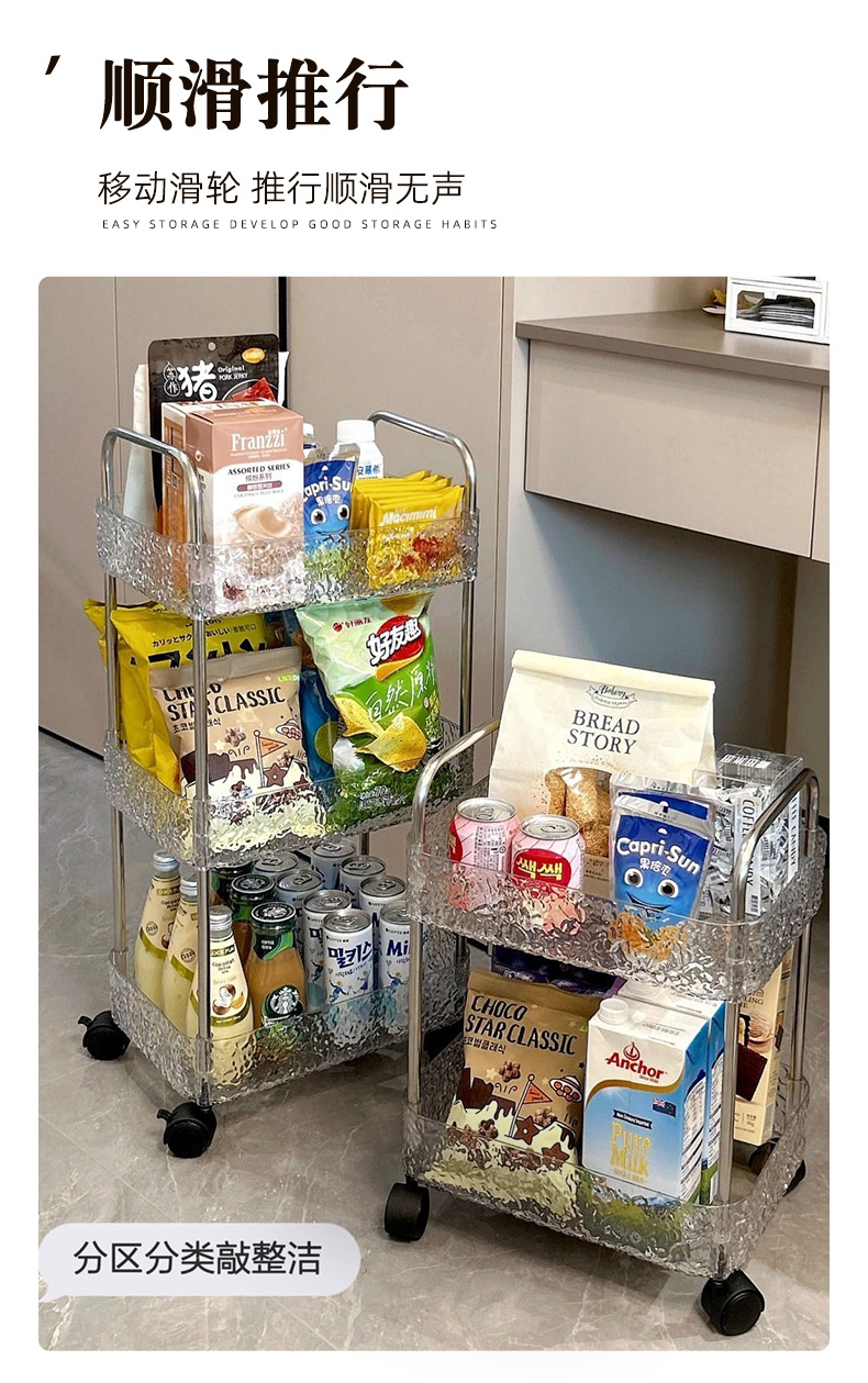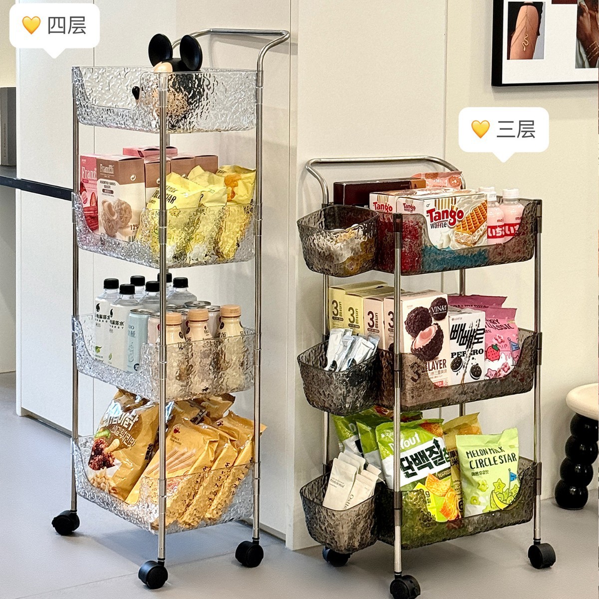 スナック収納ラック アクリル製 透明 多層 移動式 小型カート 収納ラック デスク下 多機能収納ラック