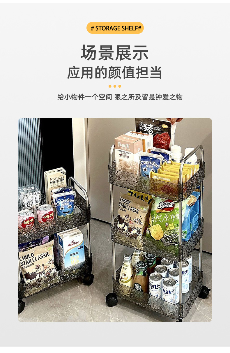 スナックカート物置き棚リビングキッチンアクリル多層移動可能ベッド床置き多機能収納棚