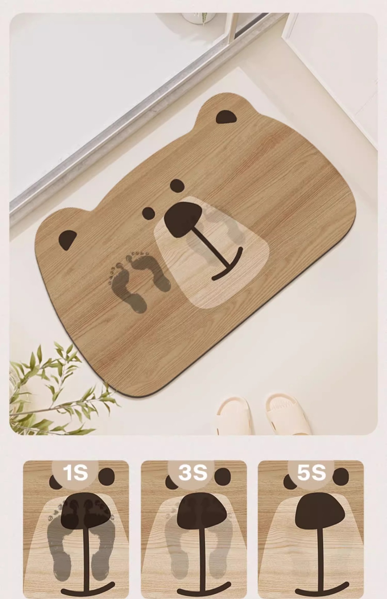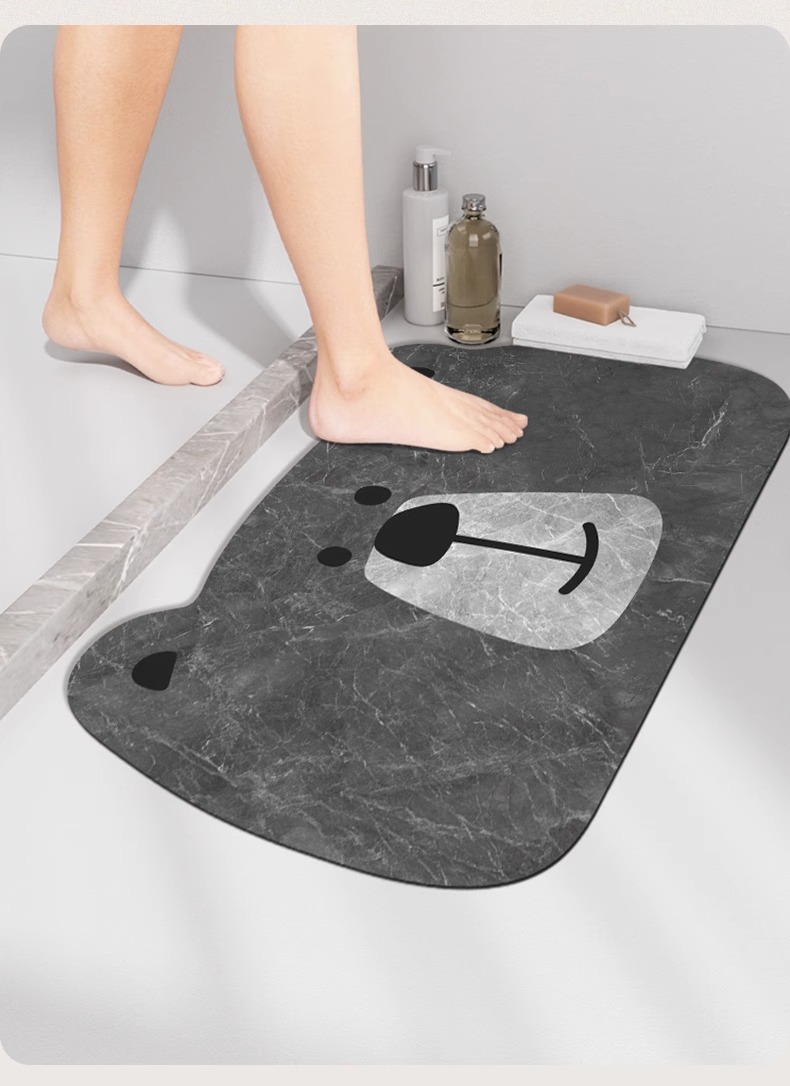 珪藻泥吸水速乾フロアマット浴室ドア浴室滑り止めトイレ落下防止マットかわいい漫画クマ