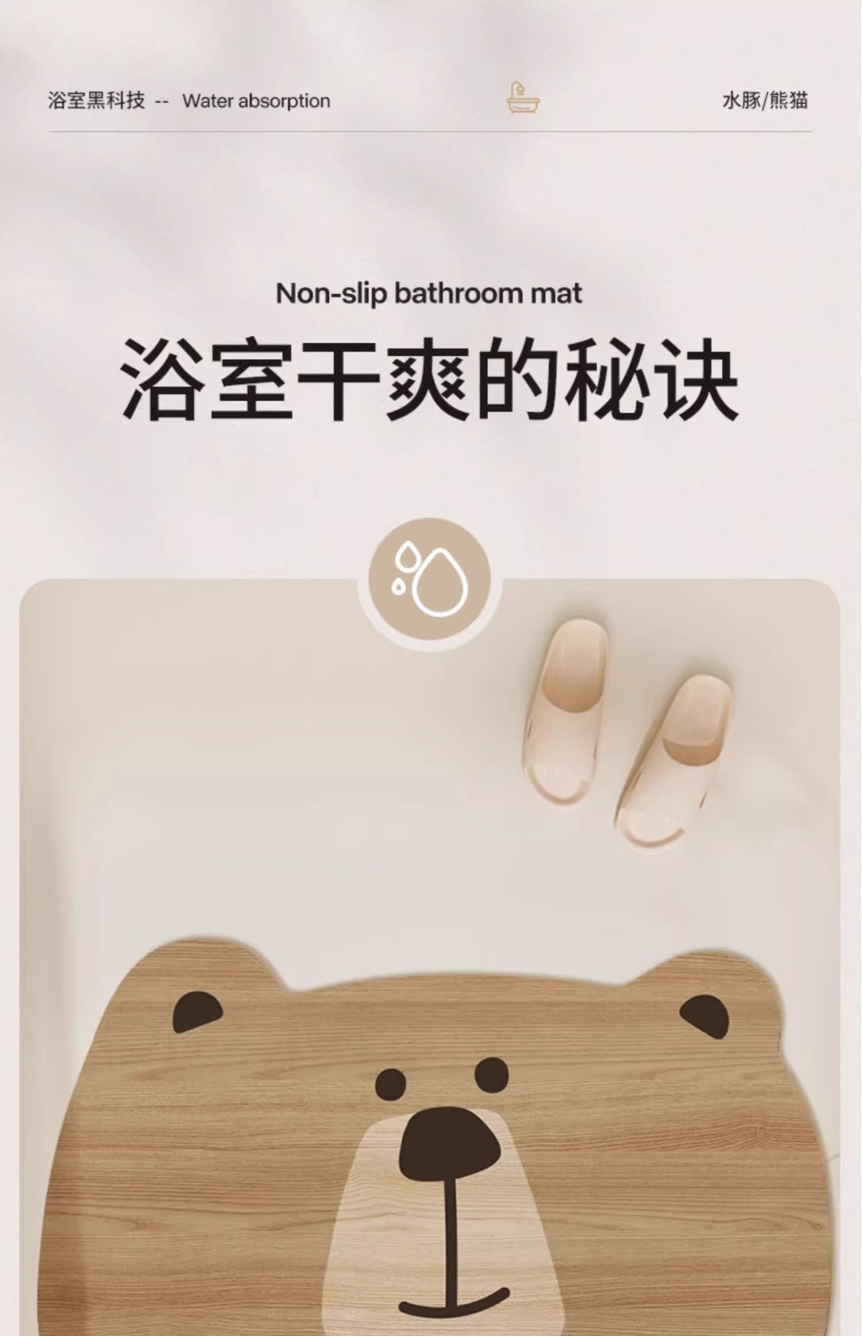 潮酷卡通美拉德硅藻泥地垫吸水地板防滑浴室免洗脚垫耐脏速干门垫