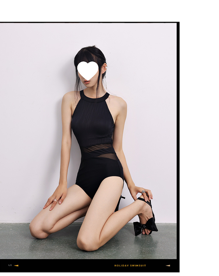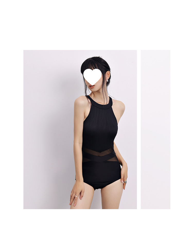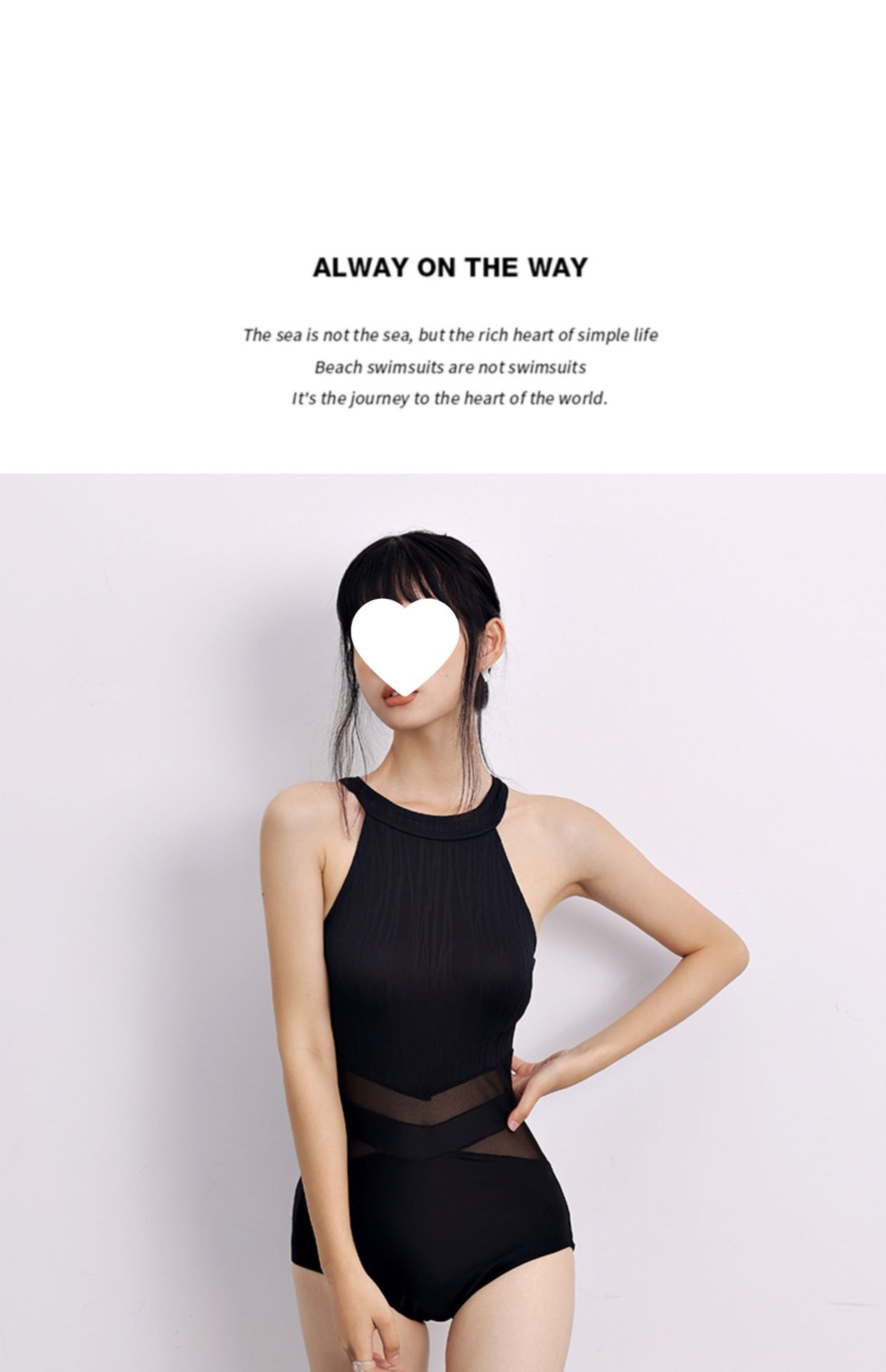 Aimuhu 黒三角ワンピース水着女性のセクシーな痩身お腹カバーイン保守的な小さな胸温泉水着