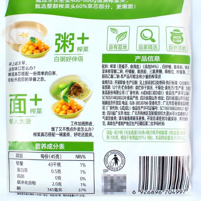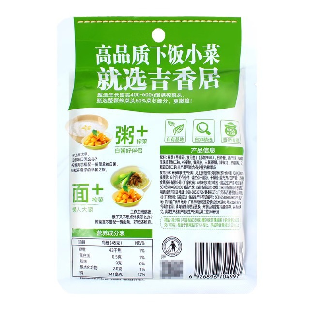 吉香居鮮香搾菜真芯80g朝食下しこり料理搾菜開袋即食味菜眉山料理