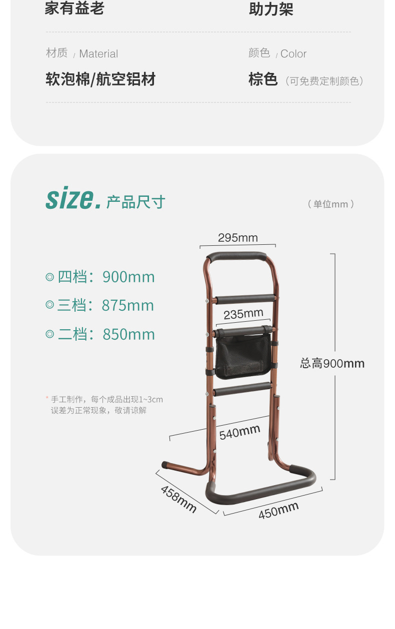 高齢者用ベッドサイド手すりガードレール、患者用折りたたみ式安全家庭用設置不要の立ち上がり補助具