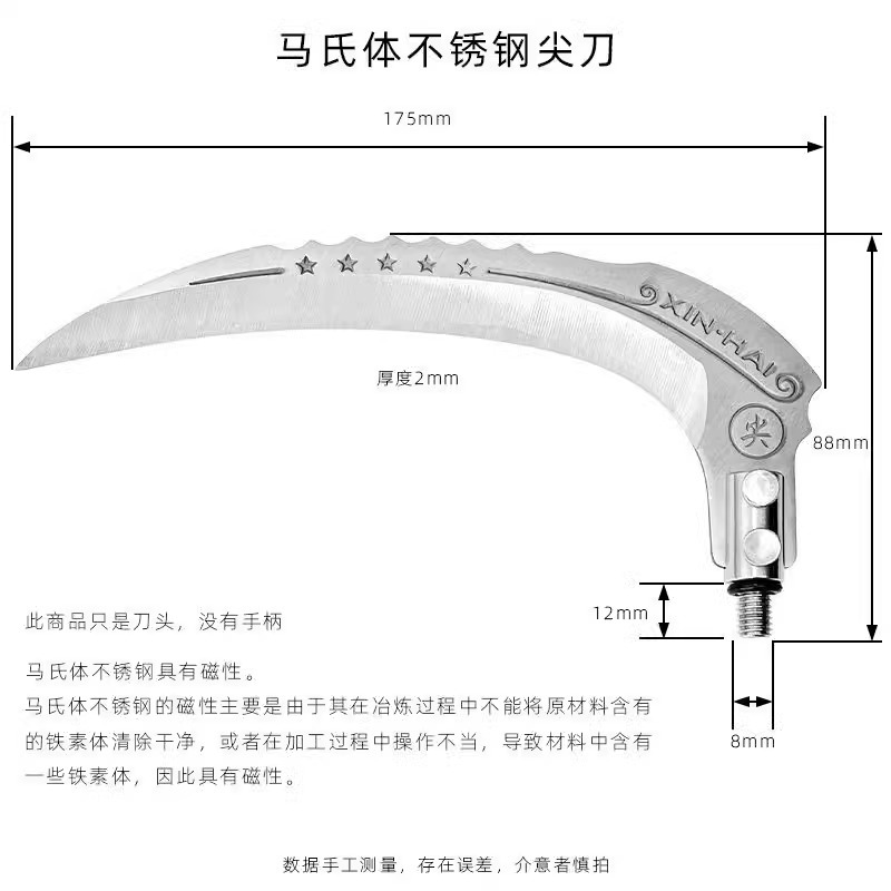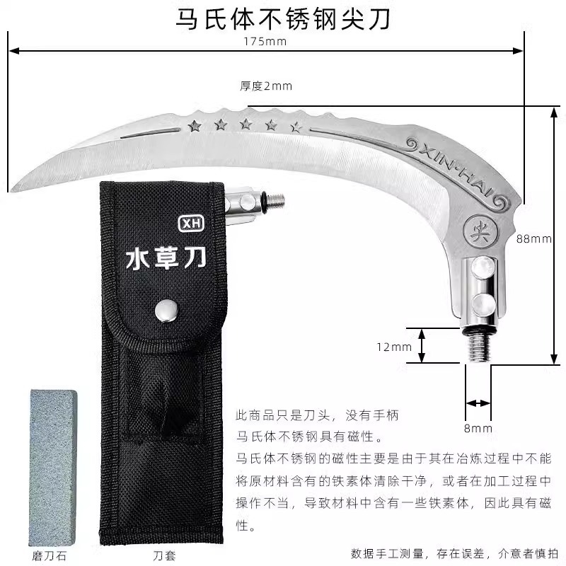 钓鱼水草镰刀水草刀加厚锰钢淬火钓鱼镰刀头钓鱼割草镰刀草洞镰刀