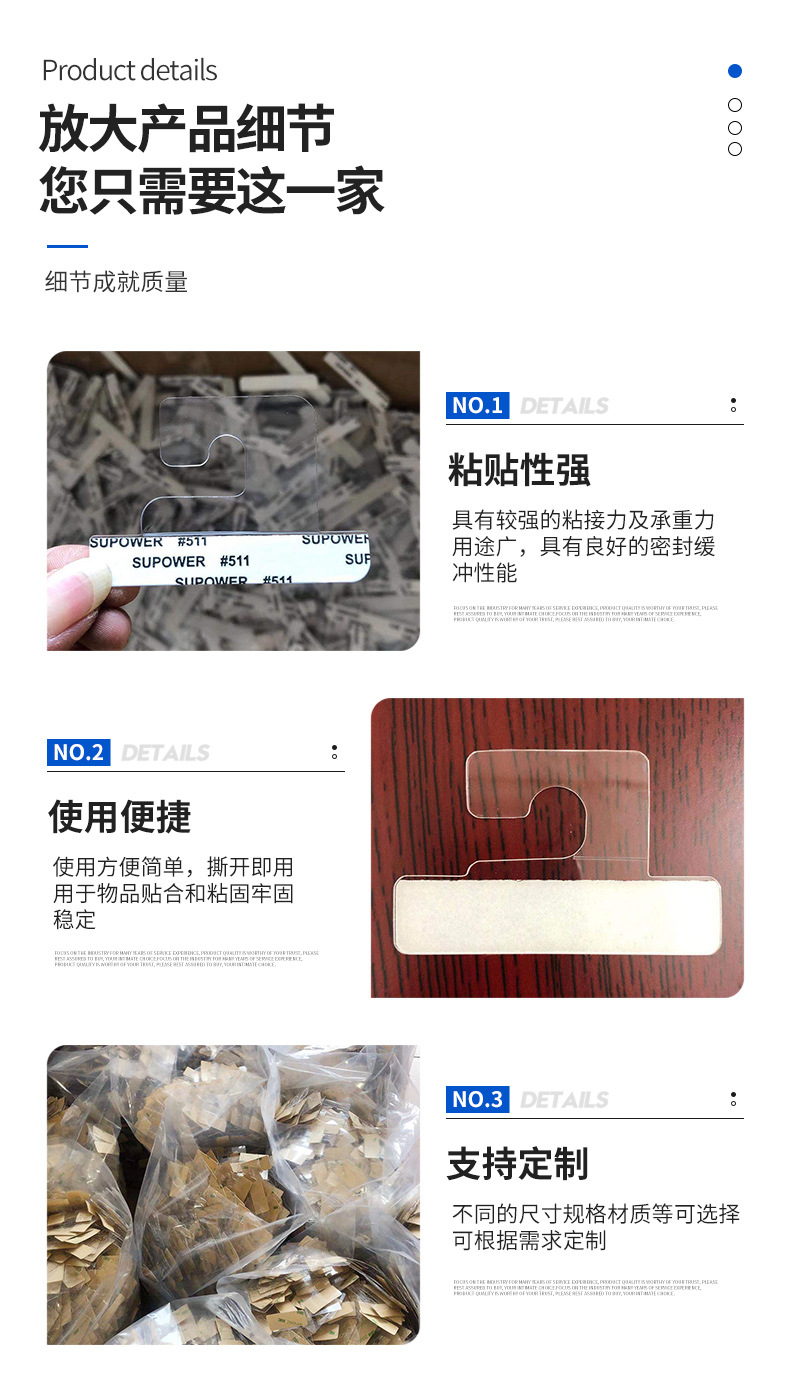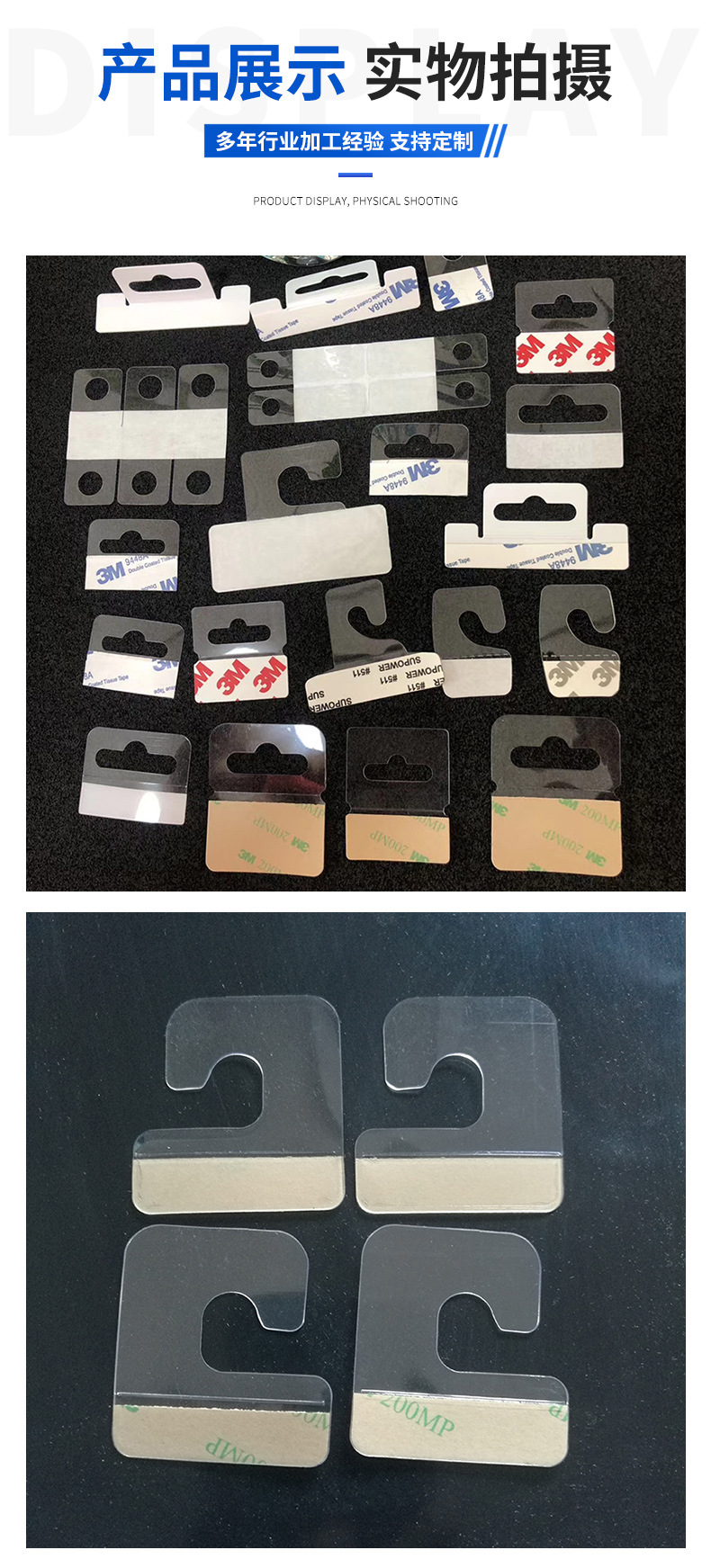 メーカーは透明な PET フック、粘着 PVC フック、航空機穴丸穴フック、カラーボックスフック、プラスチックフックを供給しています。