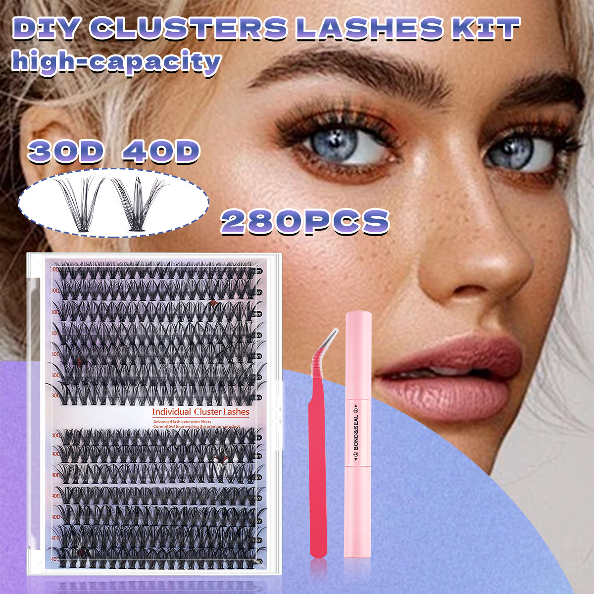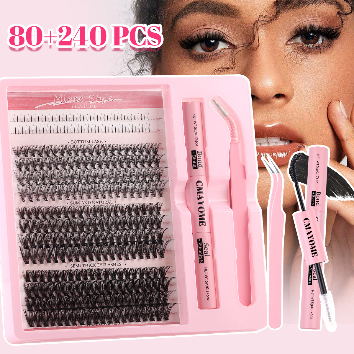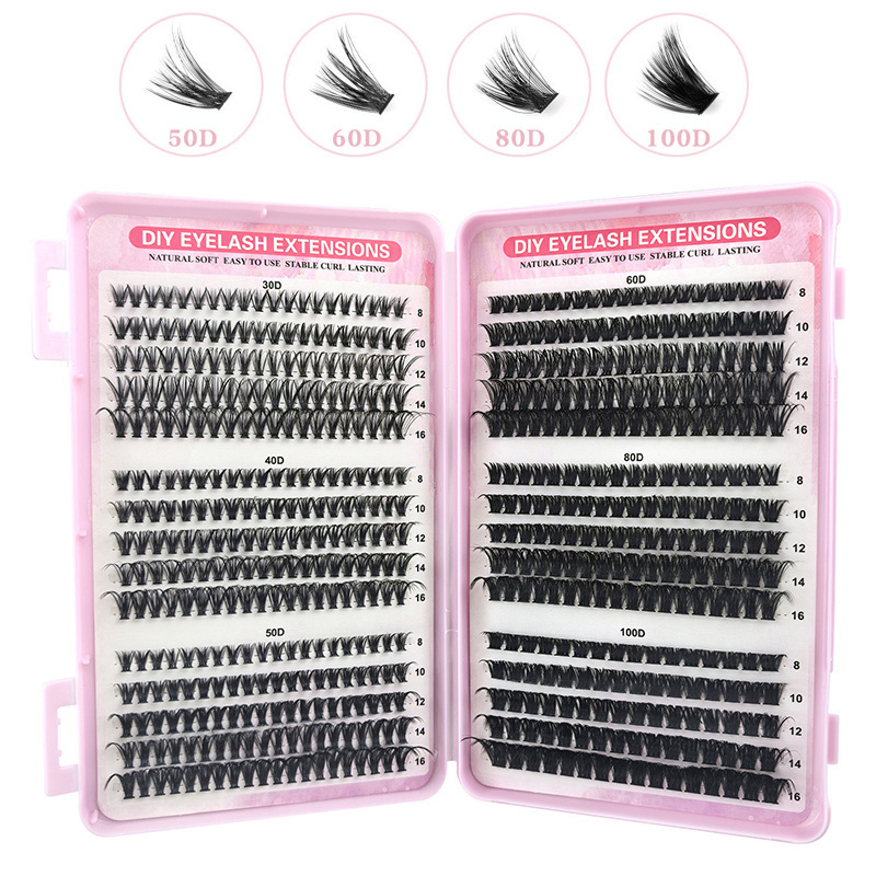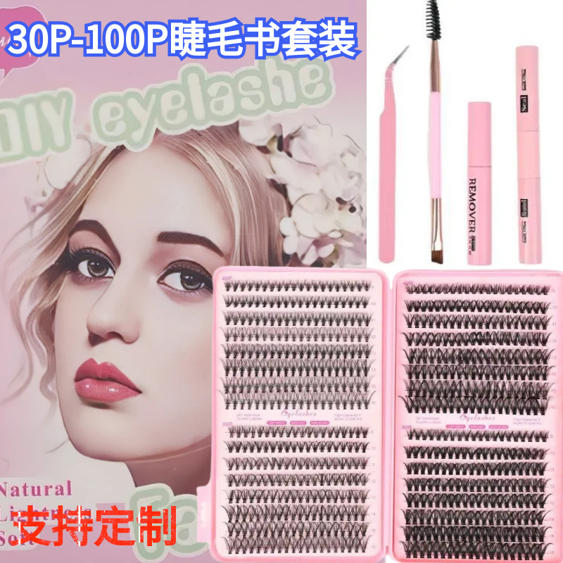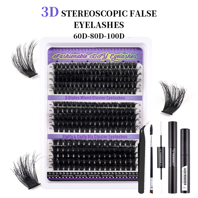 3D欧米クロスボーダー300クラスタ大容量濃密D曲偽まつげセット自然巻きDIY分段式まつげ