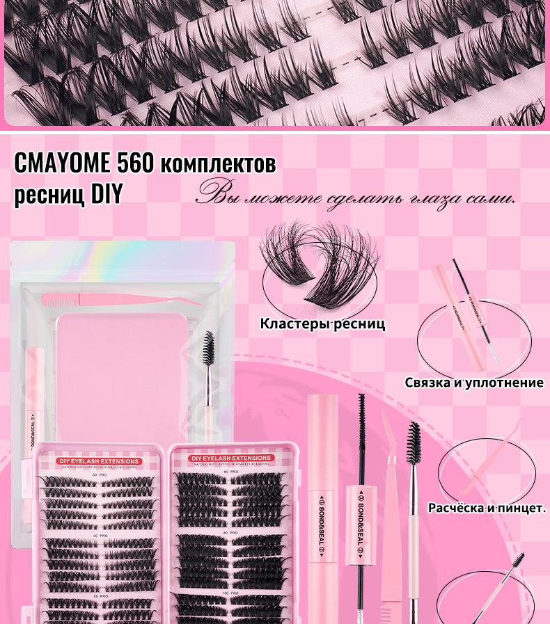 クロスボーダー DIY セグメント化されたピンクまつげブック大容量 30D-100D 混合 Amazon 新しい 570 クラスター毛