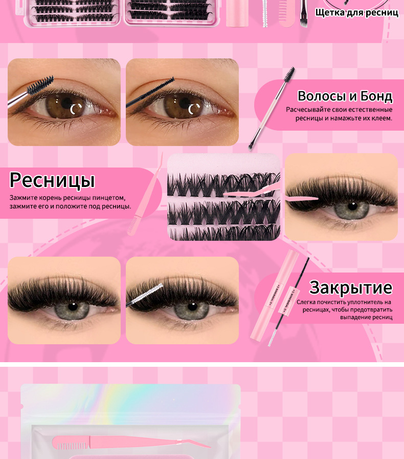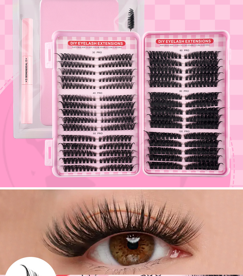 国境を越えた売れ筋の DIY セクションつけまつげキット双頭接着剤大容量シングルクラスターつけまつげギフトボックスデザイン