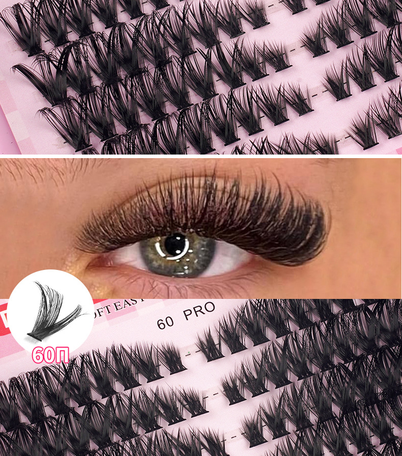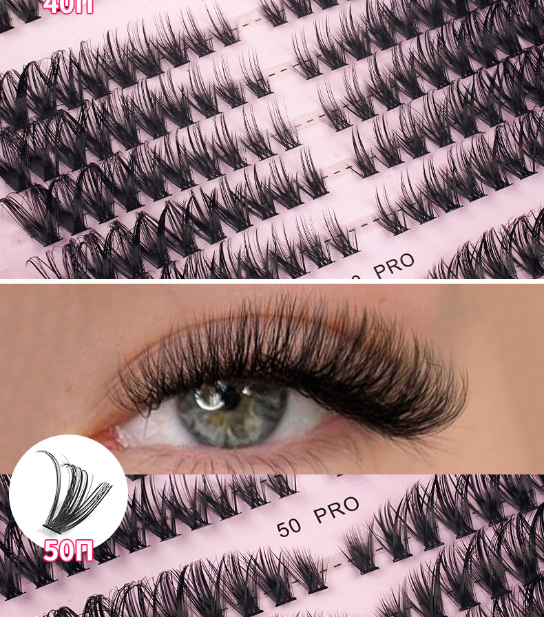 欧美跨境DIY分段单簇假睫毛60D80D浓密D翘大容量朵毛睫毛书批发