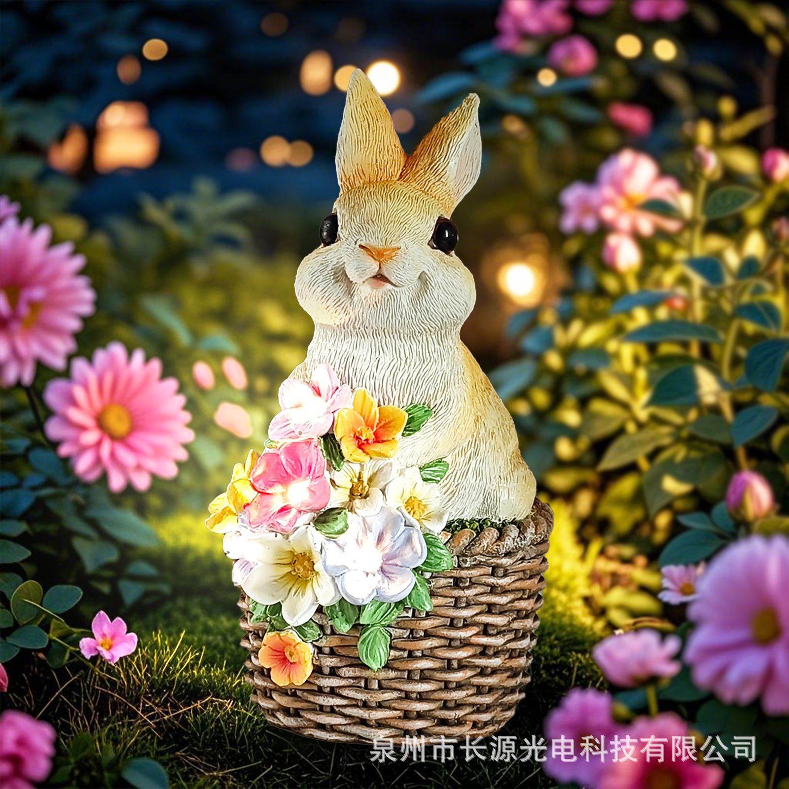 国境を越えた新しいシミュレーション太陽エネルギーウサギのバスケット装飾装飾装飾品家庭装飾庭園樹脂工芸品