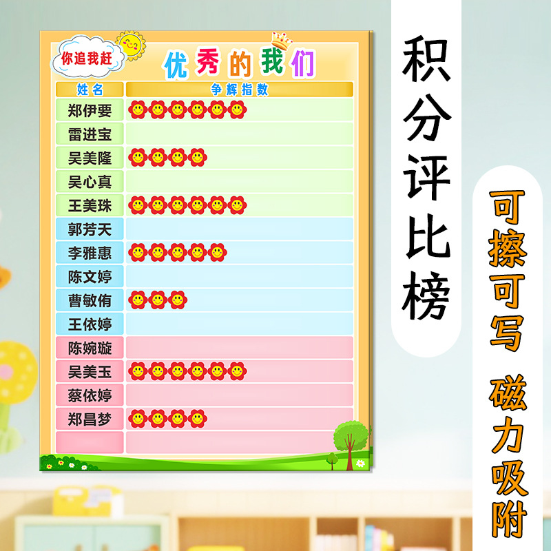 班级评比栏磁性墙贴幼儿园你追我赶红花榜表扬小组学生托管积分榜