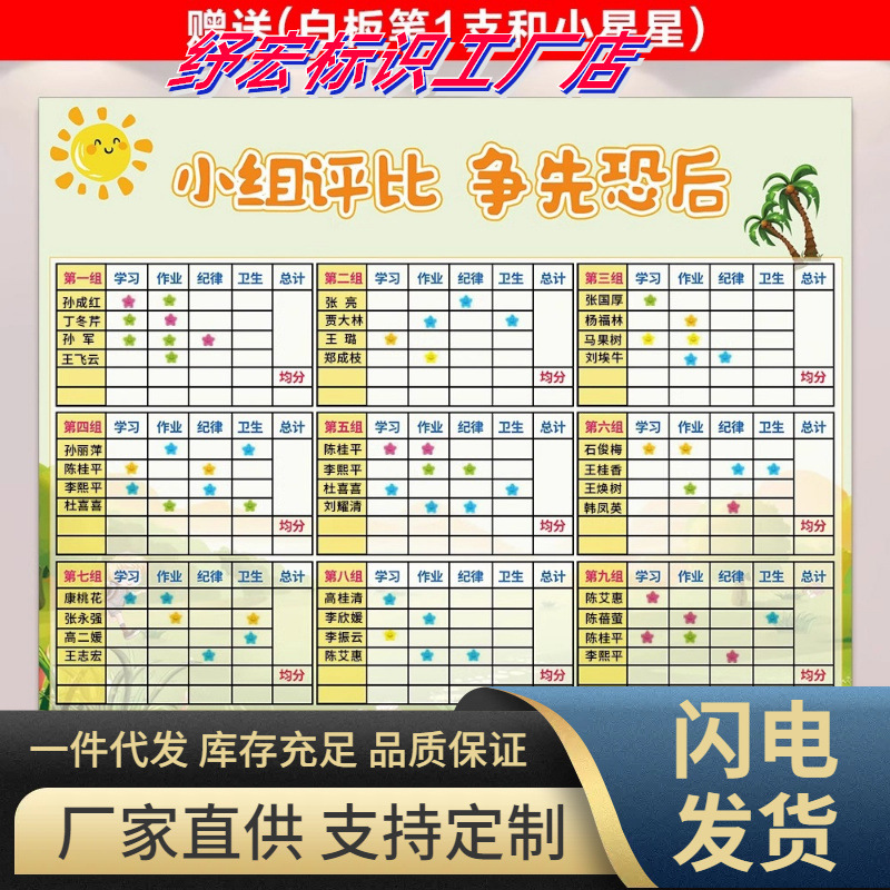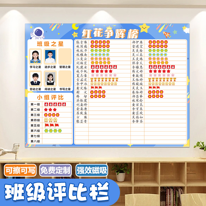 你追我赶班级小组评比栏墙贴量化考核表光荣红花榜积分表文化墙纸