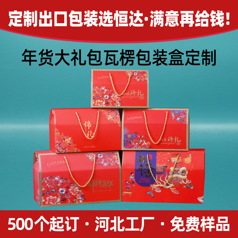 年货瓦楞礼盒大礼包特产新年春节礼品高端河北工厂手提包装盒定制