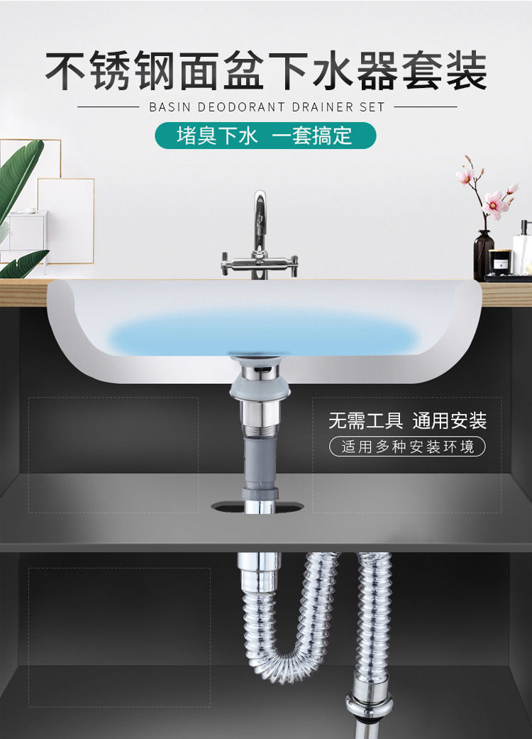 洗面器洗面器排水管ステンレス鋼ユニバーサル消臭排水管洗面器排水アクセサリー洗面器プラグバウンス