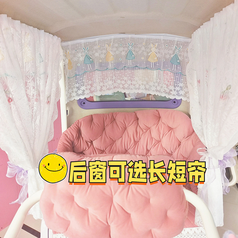 三轮电动车窗帘遮阳帘公主风防晒帘魔术贴纱帘电动三轮车内饰改造