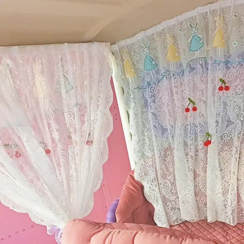 三轮电动车窗帘遮阳帘公主风防晒魔术贴纱帘电动三轮车内饰改造